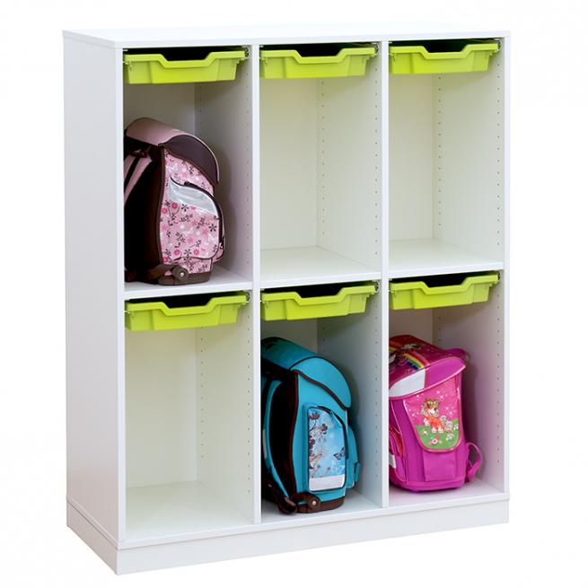 Tornisterregal Leopold, 3-reihig mit 6 flachen Boxen