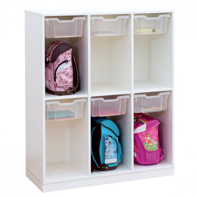 Tornisterregal Leopold, 3-reihig mit 6 hohen Boxen