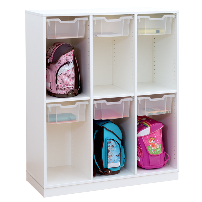 Für extra Ordnung. In diesen 2-, 3- oder 4-reihigen Regalen mit praktischen Ablagefächern oder flachen bzw. hohen Boxen bringen Ihre Schüler ihre Rucksäcke, Tornister oder Turnbeutel und wichtige Arbeitsmaterialien unter. Die Sachen sind sicher verstaut und stehen nicht im Weg.