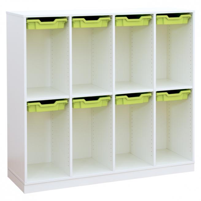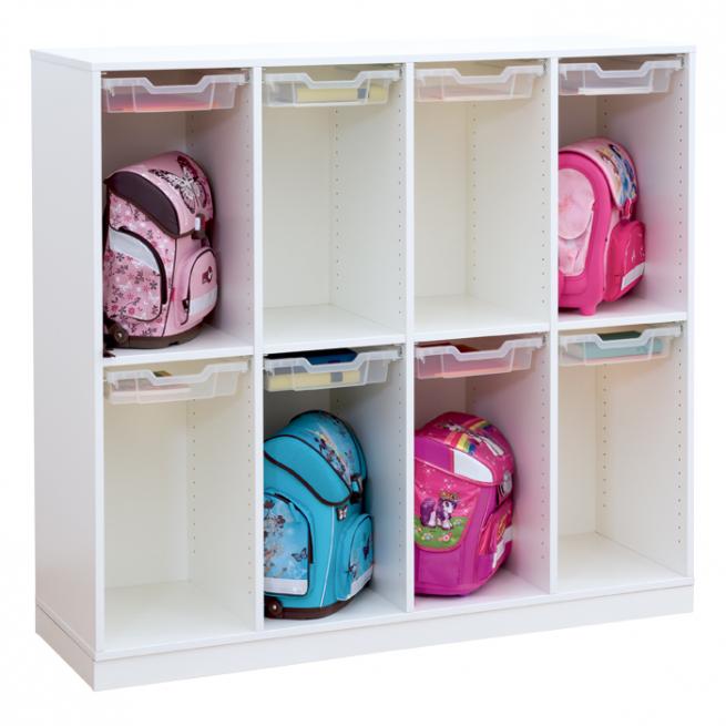 Tornisterregal Leopold, 4 reihig mit 8 flachen Boxen