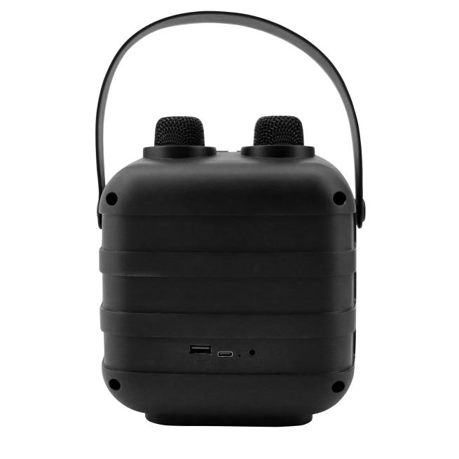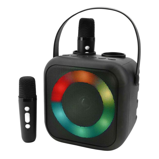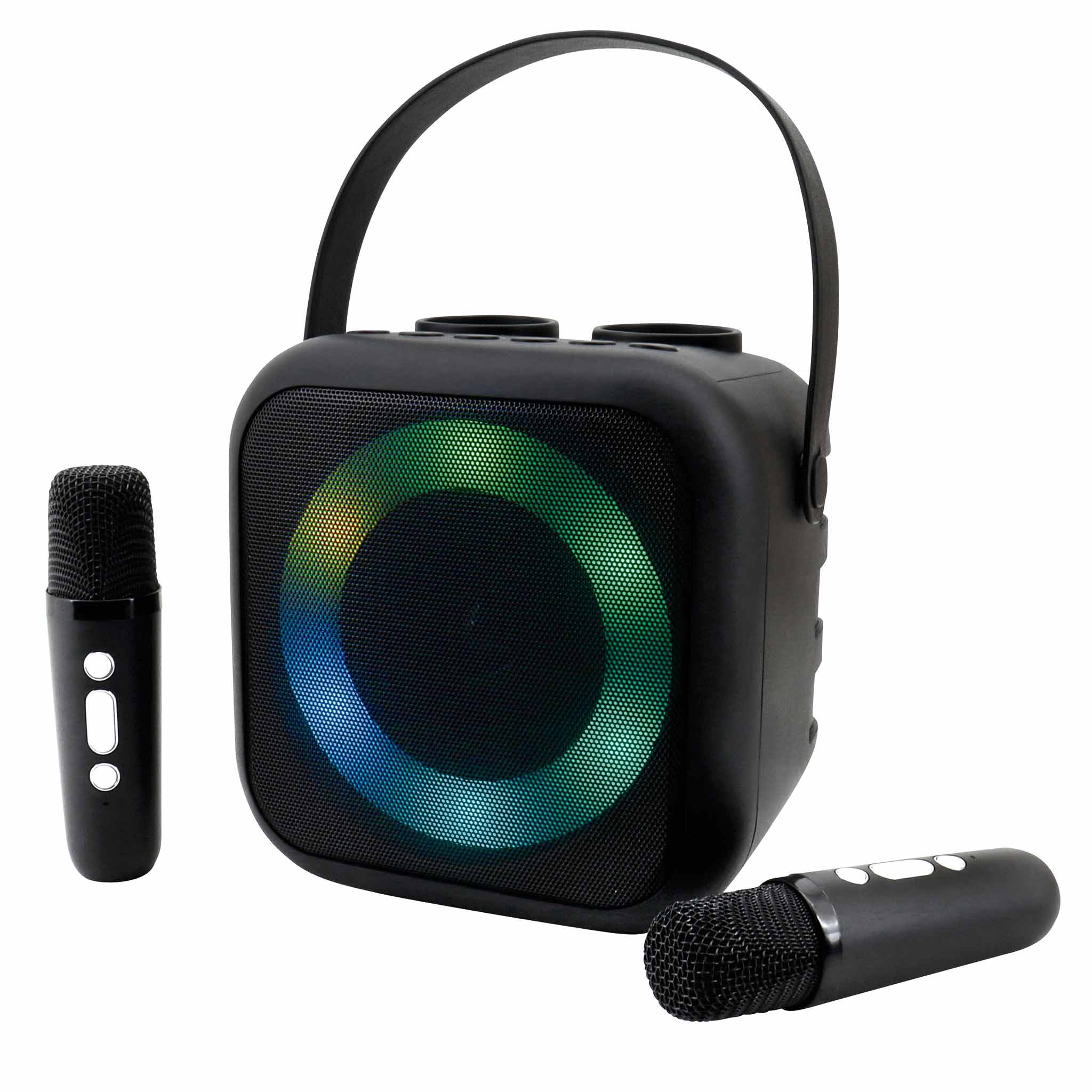Kompakter Bluetooth®-Akku-Partylautsprecher für den drahtlosen Betrieb, z. B. auf Schulfest, Abschlussfeier und Klassenfahrt. Klein und kompakt, liefert er überzeugenden Sound mit knackigen 5 Watt RMS Ausgangsleistung. Konnektivität mit Bluetooth®, Aux-In und USB-A. Spezielle Gimmicks sind der Equalizer zum Entfernen des Originalgesangs von der Musik sowie die regulierbaren LED-Discolichteffekte, die z. B. im Rhythmus der Musik leuchten (bei Bedarf lassen sich diese ausschalten).