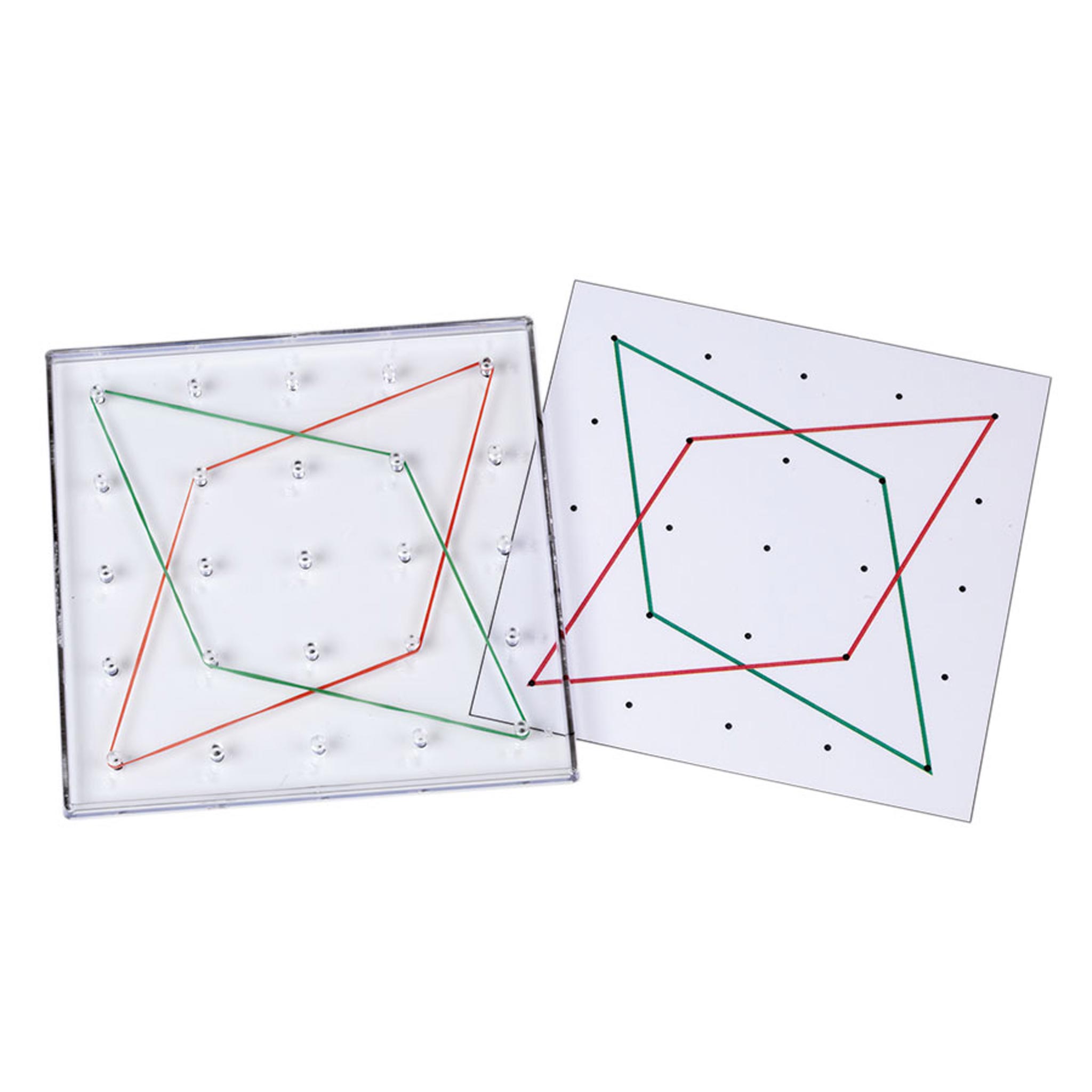 Vielfältige Einsatzmöglichkeiten für den Geometrieunterricht. Das Geometriebrett ermöglicht einen spielerischen Einstieg in die Welt der Geometrie und begeistert besonders Anfänger durch seine kreative Handhabung. Mit Gummiringen spannen die Schülerinnen und Schüler ebene Flächen auf, vergleichen Umfänge, Flächeninhalte und Winkel oder erforschen Symmetrien. So entstehen zahlreiche Gelegenheiten zum Entdecken, Experimentieren und Vergleichen.