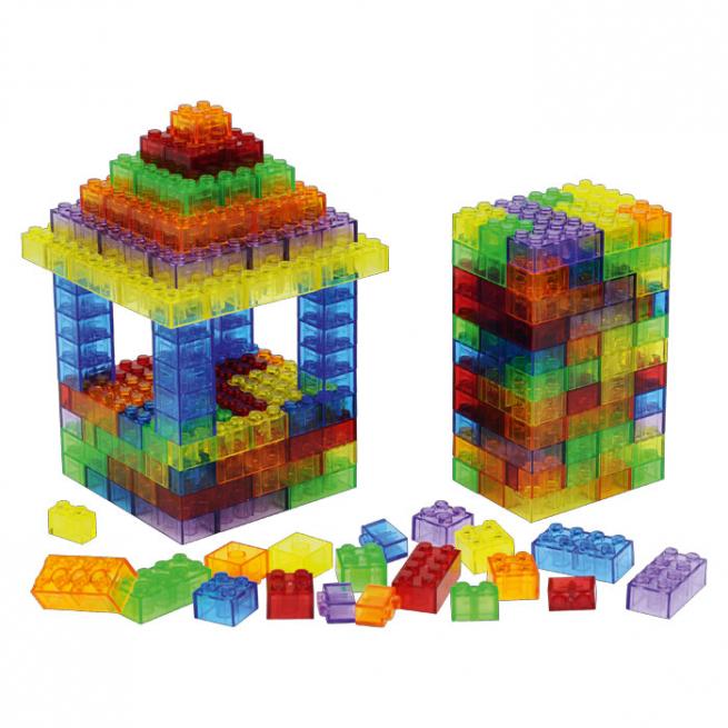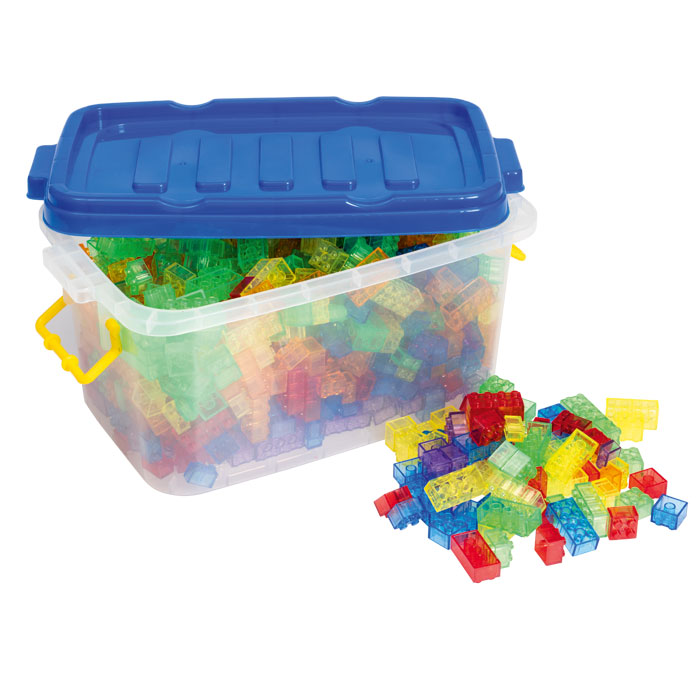 Farben sowie Formen benennen und dabei das eigene Vorstellungsvermögen fördern, gelingt Ihren Kindern mit den transparenten Steckbausteinen spielend. Die Bausteine sind sogar kompatibel mit den beliebten herkömmlichen Kunststoffbausteinen. Die Transparenz kommt z. B. auf einem Leuchttisch richtig gut zur Geltung. In der praktischen Aufbewahrungsbox mit Deckel. Ab 3 Jahren.