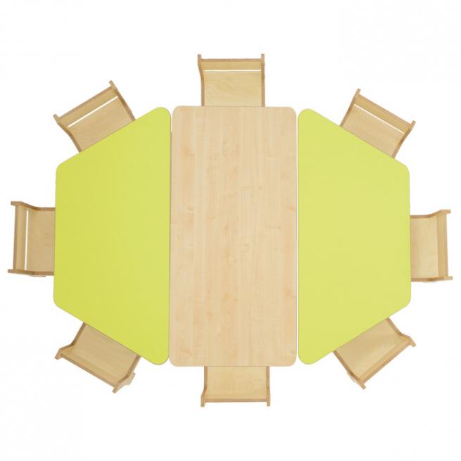 Speziell für Kinder U3 konzipiert. Diese Tischserie aus Birkenholz zeichnet sich durch ihre stark abgerundeten Ecken aus. Die Kleinen sind vor Stoßverletzungen geschützt und essen, sitzen oder spielen gern auch mal am Tisch. Die Tischplatte aus Birke-Multiplex ist dank beidseitiger Beschichtung besonders kratzfest. Stabilen Halt haben die Tische dank der Beine aus geöltem Birken-Massivholz. Zudem schützen die integrierten Gleiter Gehör und Boden. Nutzen Sie die wendbaren Gleiter je nach Boden entweder mit der Filz- oder Kunststoffseite. Kombinieren Sie die Tische nach Lust und Laune – die hellen Tischplattenfarben geben Ihrer Einrichtung einen frischen Look.