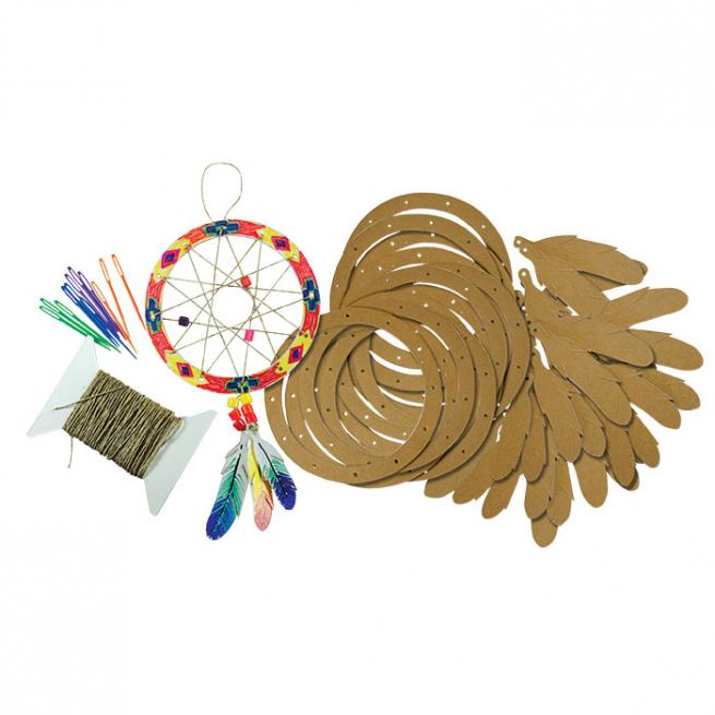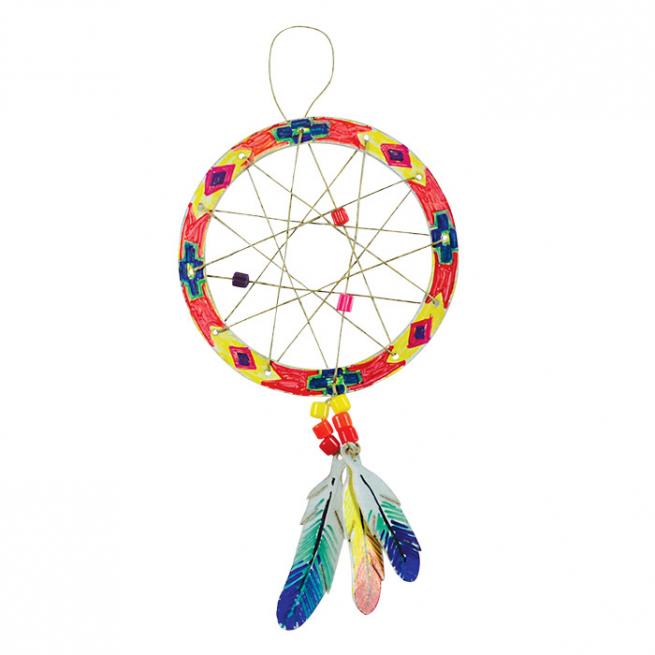 Umfangreiches Bastel-Set zum Gestalten von Traumfängern – für Kinder ein tolles Bastelprojekt: Zuerst die Ringe und Federn nach Belieben bemalen, dann die bunten Perlen aufziehen und mithilfe von Nadel und Faden ein Netz entstehen lassen. Fertig ist der Traumfänger! Verschiedene Webmuster finden Sie in der Anleitung.