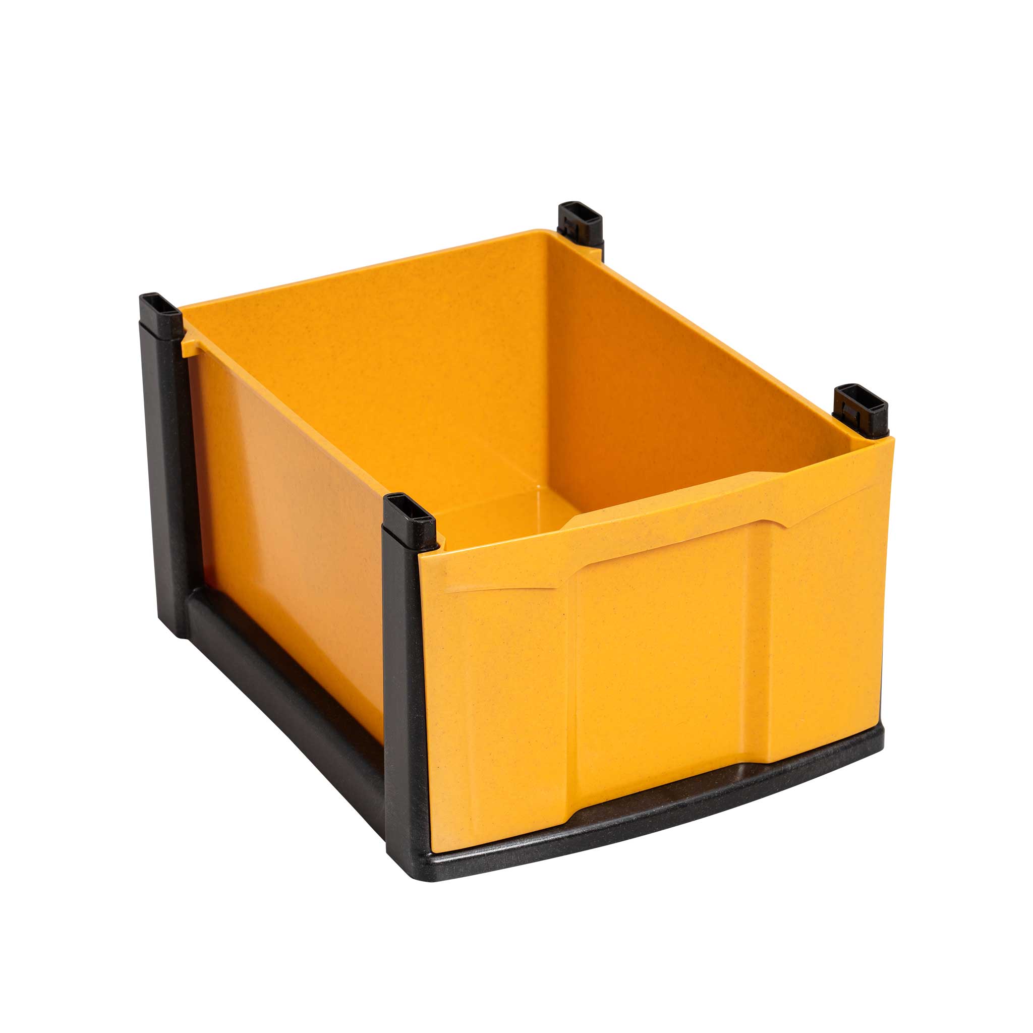 Nachhaltige, flexible Ordnung halten Sie mit den praktischen treeNside-Boxen. Die flachen und hohen treeNside-Boxen bestehen aus in Deutschland produziertem, nachhaltigem Biokunststoffgranulat mit sichtbaren Holzfasern und haben einen feinen Holzduft. Jede Box ist mit einem Rahmen in Schwarz ausgestattet. Der Rahmen stabilisiert die jeweilige Box zusätzlich und erleichtert das Stapeln mehrerer Boxen. Bitte bestellen Sie den Deckel separat.