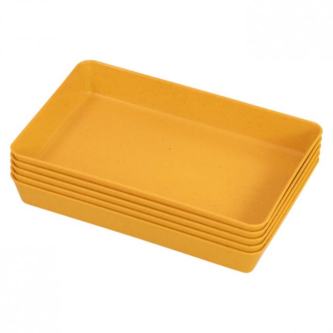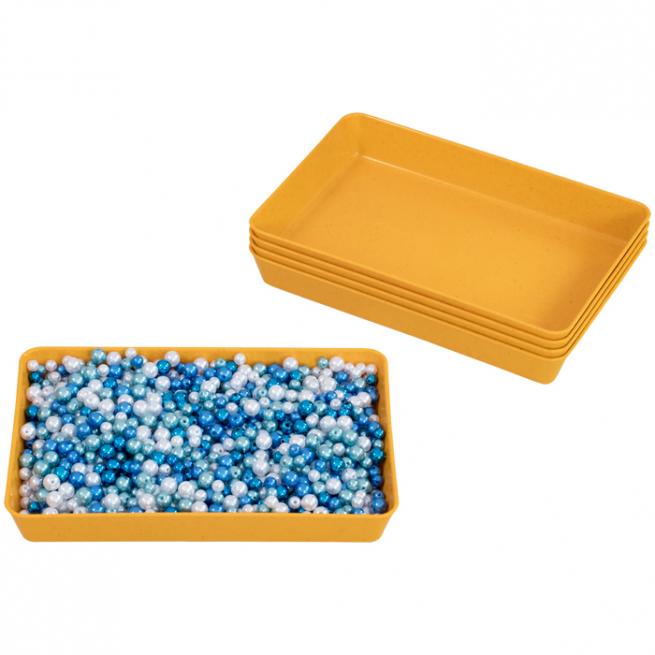 Halten Sie nachhaltig Ordnung – mit den robusten Materialschalen aus biobasiertem Material. Das Biokunststoffgranulat aus Holz macht fossile Ressourcen für die Produktion weitestgehend obsolet. Die Schalen in 2 unterschiedlichen Größen (Materialschalen Groß) und 8 verschiedenen Farben haben sichtbare Holzfasern. Sogar einen dezenten Holzgeruch nehmen Sie wahr. Ob in der Schule, in der Kita, im Büro oder zu Hause – die Materialschalen sind die optimale Sammelstelle für Bastel- bzw. Büromaterial, Stifte, Scheren und vieles mehr. Auch optimal geeignet für Wasser oder Kleister. Nach Gebrauch einfach ausspülen und platzsparend stapeln.