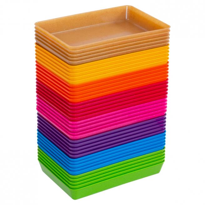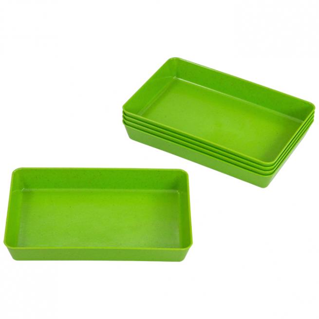 Halten Sie nachhaltig Ordnung – mit den robusten Materialschalen aus biobasiertem Material. Das Biokunststoffgranulat aus Holz macht fossile Ressourcen für die Produktion weitestgehend obsolet. Die Schalen in 2 unterschiedlichen Größen (Materialschalen Groß) und 8 verschiedenen Farben haben sichtbare Holzfasern. Sogar einen dezenten Holzgeruch nehmen Sie wahr. Ob in der Schule, in der Kita, im Büro oder zu Hause – die Materialschalen sind die optimale Sammelstelle für Bastel- bzw. Büromaterial, Stifte, Scheren und vieles mehr. Auch optimal geeignet für Wasser oder Kleister. Nach Gebrauch einfach ausspülen und platzsparend stapeln.