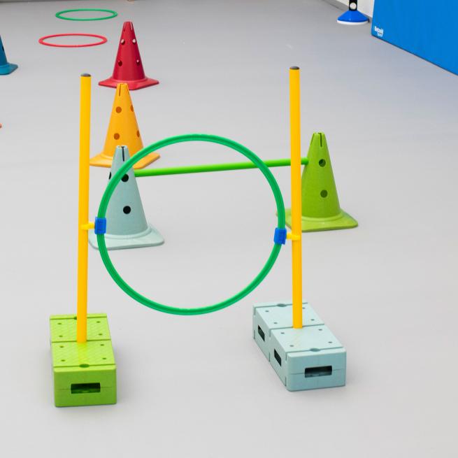 Den Parcoursstein aus treeNside-Material gibt es in den Farben Rot, Gelb, Grün und Blau. Nutzen Sie mehrere Parcourssteine, um beispielsweise abwechslungsreiche Bewegungsparcours drinnen oder draußen in Kindergarten, Schule, Sportunterricht oder Pausenhof aufzubauen. Kinder balancieren, steigen, klettern und überwinden die Hindernisse mit Freude. Dabei trainieren sie im aktiven Spiel ihre Koordination und motorische Fähigkeiten. Der Parcoursstein ist mit Aussparungen für Reifen und Stangen ausgestattet.