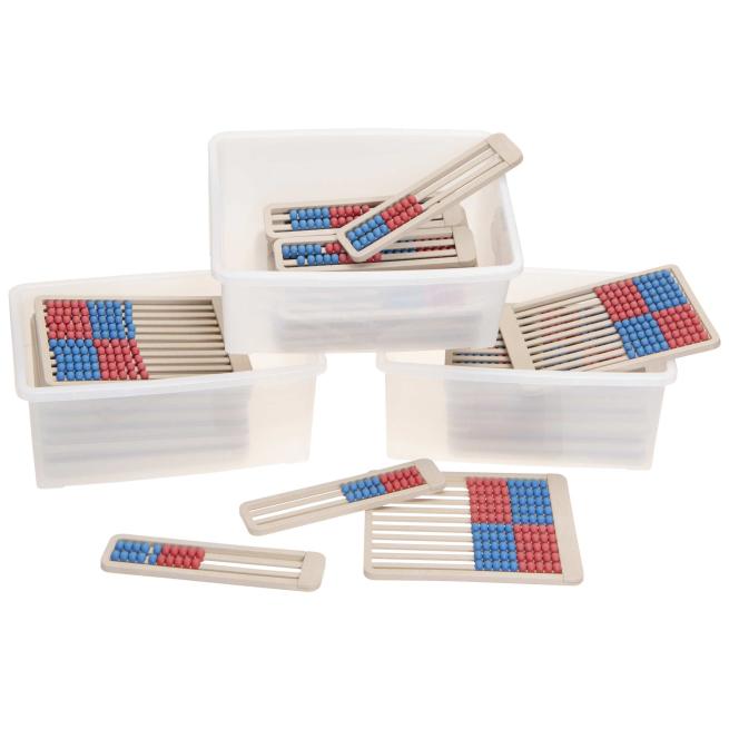 24 Rechenrahmen aus treeNside-Material für den Zahlenraum bis 20 (inklusive 20 Rechenkugeln pro Rahmen, je 10 in Rot und Blau)24 Rechenrahmen aus treeNside-Material für den Zahlenraum bis 100 (inklusive 100 Rechenkugeln pro Rahmen, je 50 in Rot und Blau)