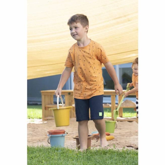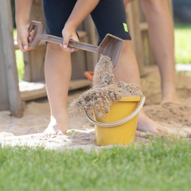 Der Sandspiel-Eimer aus umweltfreundlichem treeNside-Biokunststoff bereichert jeden Sandkasten! Robust und wetterfest, eignet er sich perfekt zum intensiven und ausdauernden Gebrauch. Der Henkel ist griffig für Kinderhände. Auf der Unterseite besitzt der Eimer ein Mandala, das die Kinder in den Sand eindrücken. Besonders gut klappt das, wenn der Sand feucht ist. Die Kinder haben ihre helle Freude und erschaffen ihre ganz eigenen, kunstvollen Motive im Sand, z. B. indem sie den Eimerboden in der Luft weiterdrehen und erneut auf das frische Muster im Sand drücken.