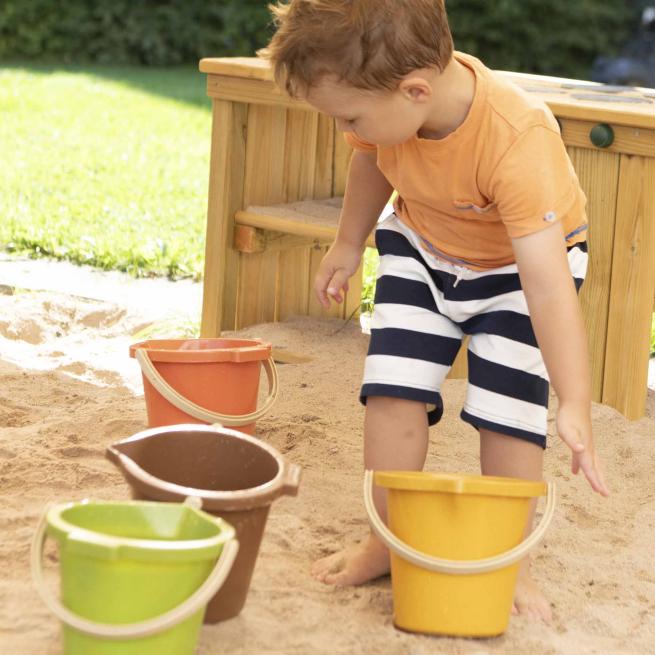 Der Eimer ist in zahlreichen verschiedenen Farben verfügbar. Wählen Sie ganz nach Ihrem Bedarf und den Wünschen der Kinder.