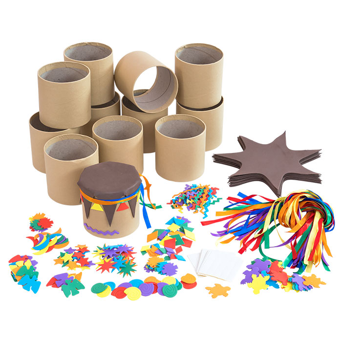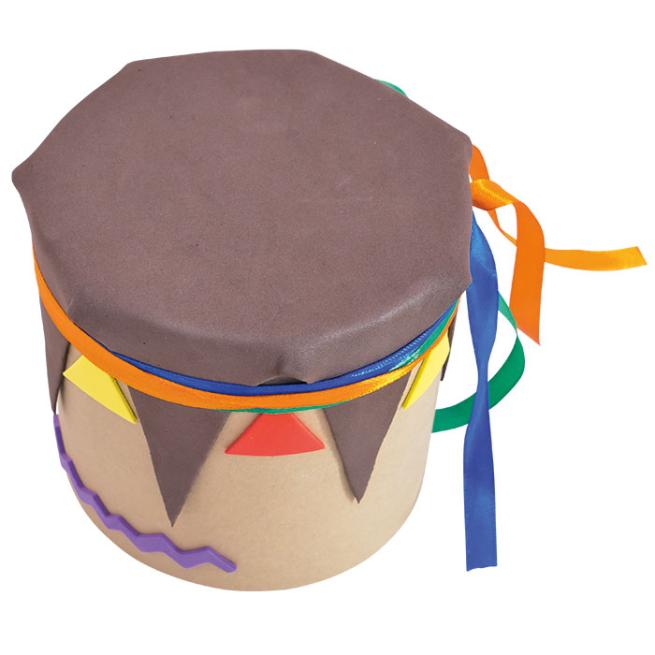 Zusammen bauen und gemeinsam trommeln – optimal mit dem Bastel-Set. Bis zu 12 Kinder beschäftigen Sie gleichzeitig mit der Ausgestaltung ihrer eigenen Trommel. Dazu bekleben die Kinder den jeweiligen Trommelkorpus mit den zahlreichen farbenfrohen Aufklebern. Das Trommelfell aus Moosgummi befestigen Sie mithilfe der farbigen Bänder. Jede Trommel ist 15 cm hoch und hat einen Ø von 11,5 cm.
