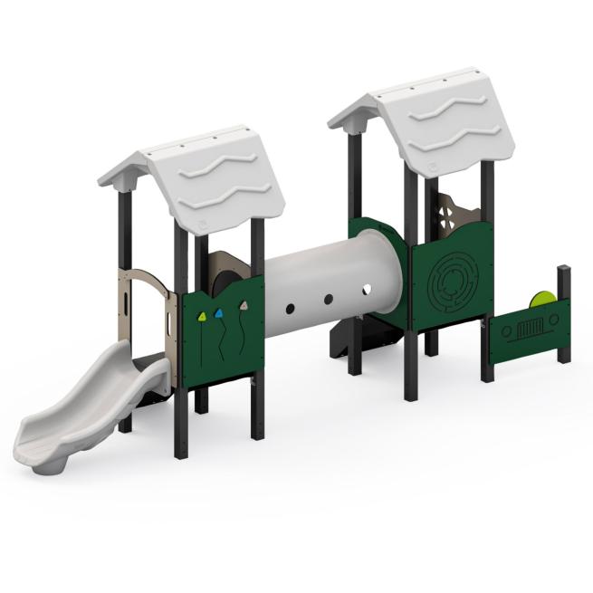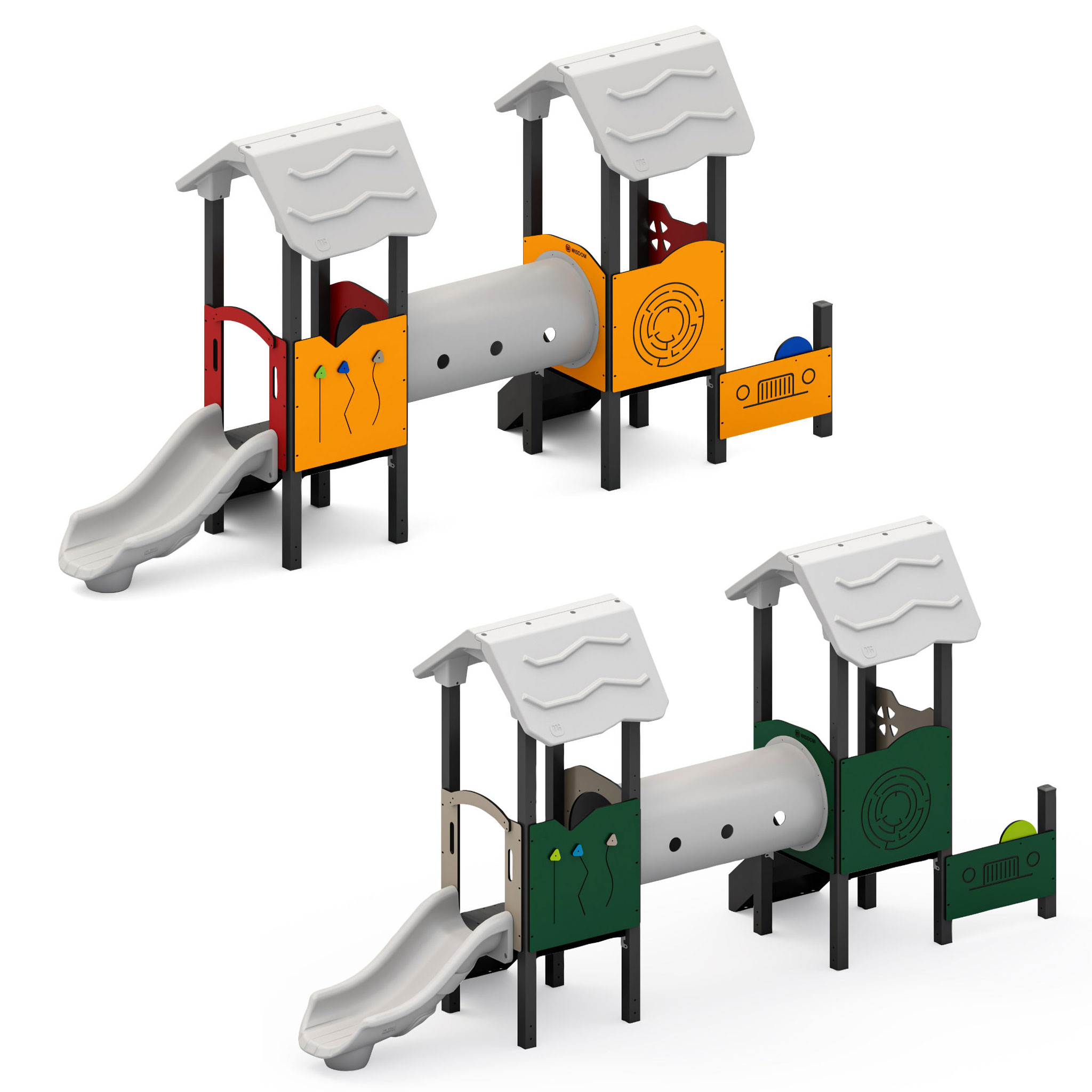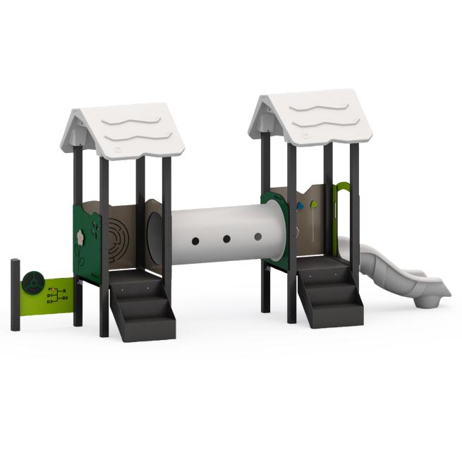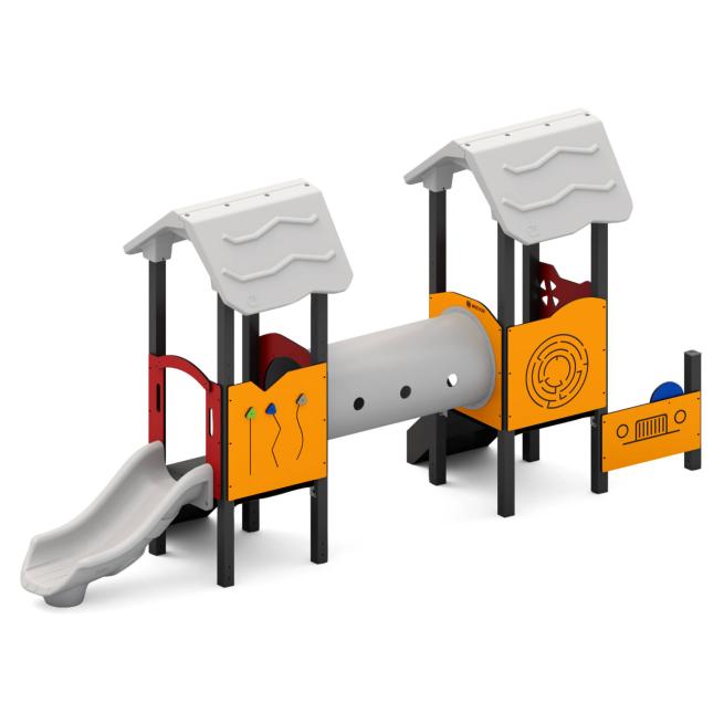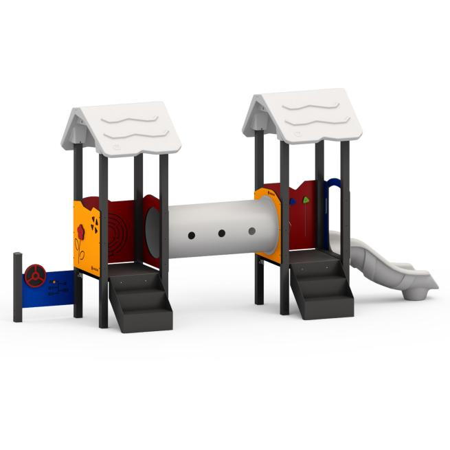 Die Gestaltung des Türmchen-Duos orientiert sich am altersgemäßen motorischen Entwicklungsstand der Kinder und knüpft zielgerichtet daran an. Der Aufstieg auf die Türmchen gelingt sicher und einfach über Mini-Treppen. Oben angekommen, warten die 60 cm lange Mini-Rutsche oder der verbindende Kriechtunnel auf die Kleinen. Auch die unterschiedlichen Spielwände mit Schiebe-Applikation, Labyrinth-Rätsel oder appliziertem Auto sorgen für motorische und kognitive Abwechslung und motivieren zum heiteren Ausprobieren.Wetterfest, langlebig und sicher