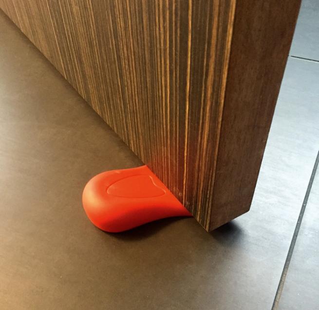 Einfach unter die Tür legen. Geeignet für Türen im Innenbereich mit einem Abstand zwischen Boden und Tür von max. 25 mm. Inklusive Wandaufhängung.
