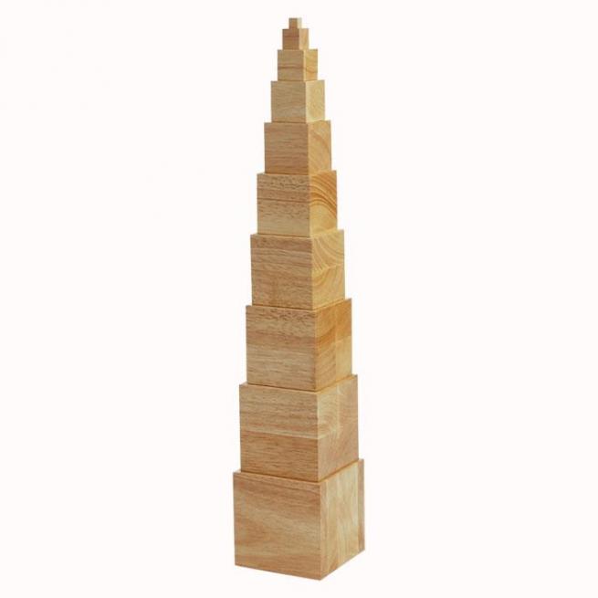Die Türme aus Massiv-Holz bestehen aus 10 Würfeln von 1 cm³ bis 1.000 cm³.