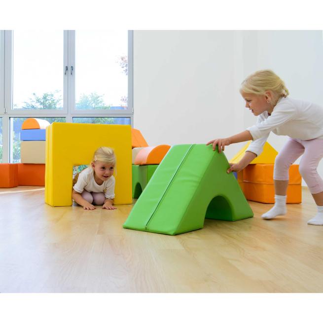 Außen Turnmatte, innen Puzzle – diese Matten haben es in sich! Koordination und Merkfähigkeit kombinieren Sie kinderleicht mit Spiel und Spaß. Die Puzzleteile stecken in einem Bezug aus einfach abwischbarem Planenstoff, der speichel- und urinfest ist. Die einzelnen Puzzleteile bestehen ebenfalls aus abwischbarem, speichel- und urinfestem Leichtplanenstoff, der mit Schaumstoff gefüllt ist.