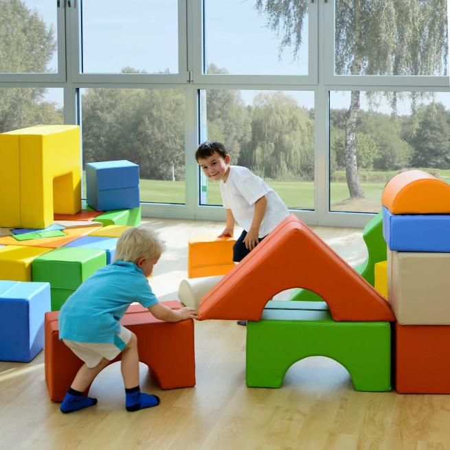 Außen Turnmatte, innen Puzzle – diese Matten haben es in sich! Koordination und Merkfähigkeit kombinieren Sie kinderleicht mit Spiel und Spaß. Die Puzzleteile stecken in einem Bezug aus einfach abwischbarem Planenstoff, der speichel- und urinfest ist. Die einzelnen Puzzleteile bestehen ebenfalls aus abwischbarem, speichel- und urinfestem Leichtplanenstoff, der mit Schaumstoff gefüllt ist.