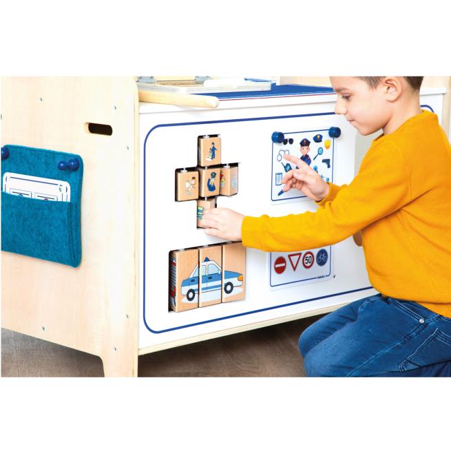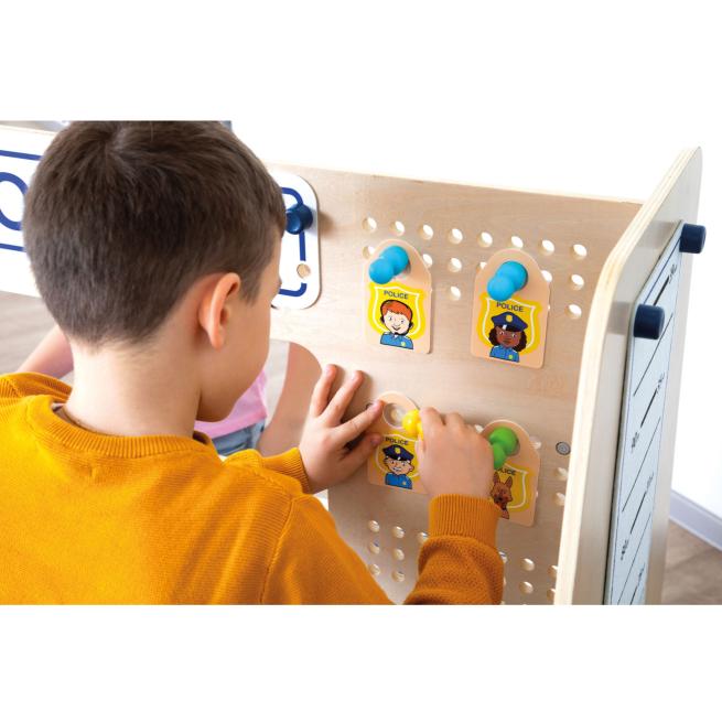 Hast du schon einmal davon geträumt, Feuerwehrmann oder Polizist zu sein? Ein innovatives Spielcenter mit zwei verschiedenen Themenbereichen könnte diesen Traum wahr werden lassen und verspricht großartigen Rollenspielspaß. Mit den vielfältigen Elementen und der doppelseitig bedruckten Spielmatte können Kinder ganz einfach zwischen einer Polizeistation und einer Feuerwehrwache wechseln. Der Rollblock präsentiert eine Vielzahl von Motiven aus dem Polizei- und Feuerwehralltag, sodass die Kinder ein grundlegendes Verständnis für die Arbeit dieser Berufsgruppen entwickeln können.
