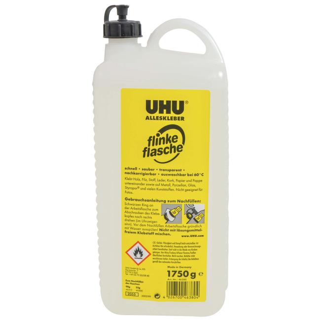 Der bewährte Kleber in der handlichen Flasche. Mit Klebekopf für Punkt-, Strich- und Flächenkleben.