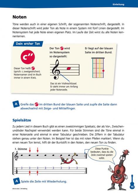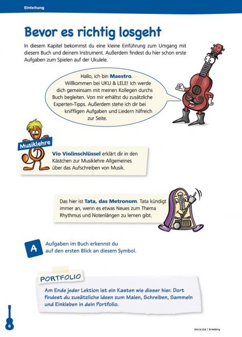 Akkorde, Schlagmuster, Anleitungen zum Melodiespiel, Noten- und Rhythmuslehre – mithilfe der lustigen Maskottchen Uku & Lele lernen Ihre Schüler spielend den Umgang mit dem freundlich klingenden kleinen Zupfinstrument. Konzipiert auf der Grundlage der BOOMWHACKER®-Farben. Mit farbigen Akkordsymbolen und Tabulatoren für eine direkte Unterstützung am Instrument. Zusätzliche Online-Videos erleichtern die Erarbeitung.