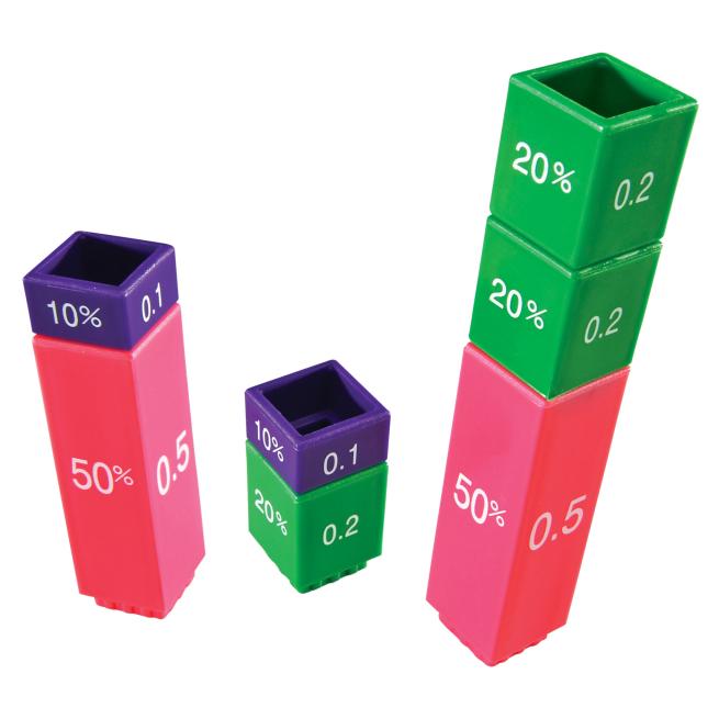 Anhand der 12 Türme lernen Ihre SuS die Beziehungen zwischen Bruch-, Prozent- und Dezimalzahlen kennen. Die Türme bestehen aus insgesamt 51 Steckwürfeln, die auf jeweils 3 Seiten mit den entsprechenden Zahlen bedruckt sind. Das Rechnen mit Brüchen veranschaulicht sich den Kindern beim Bauen der Türme. Wer die Turmhöhen vergleicht, erfasst zudem das Verhältnis der einzelnen Werte zueinander. Die unterschiedlichen Bruchzahlen sind farblich gut zu unterscheiden. Die Türme sind ein optimales Hilfsmittel zum Lösen von Rechenaufgaben oder beim Kontrollieren.