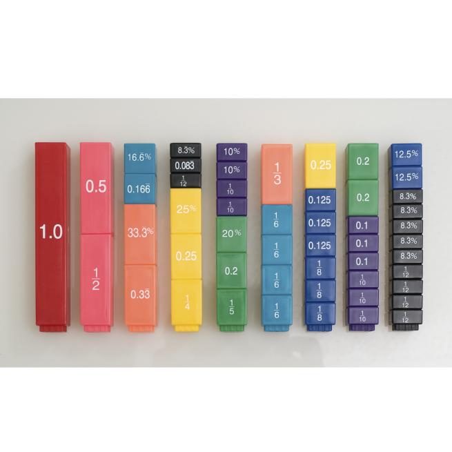 • enthalten sind 51 Steckwürfel: 1 x 1/1, 2x 1/2, 3x 1/3, 4x 1/4, 5x 1/5, 6x 1/6, 8x 1/8, 10x 1/10, 12x 1/12