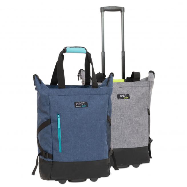 Rückenschonendes Raumwunder auf Rollen. Erleichtern Sie sich den Transport von schweren Büchern, Ordnern oder Bastelmaterialien mit dem Universal-Trolley Punta Wheel. Der schnell ausziehbare Griff sorgt für vielfältige Transportmöglichkeiten – entweder als Trolley oder Tragetasche. Wählen Sie zwischen den modischen Farb-Varianten Dunkelgrau-Lime oder Dunkelblau-Türkis.