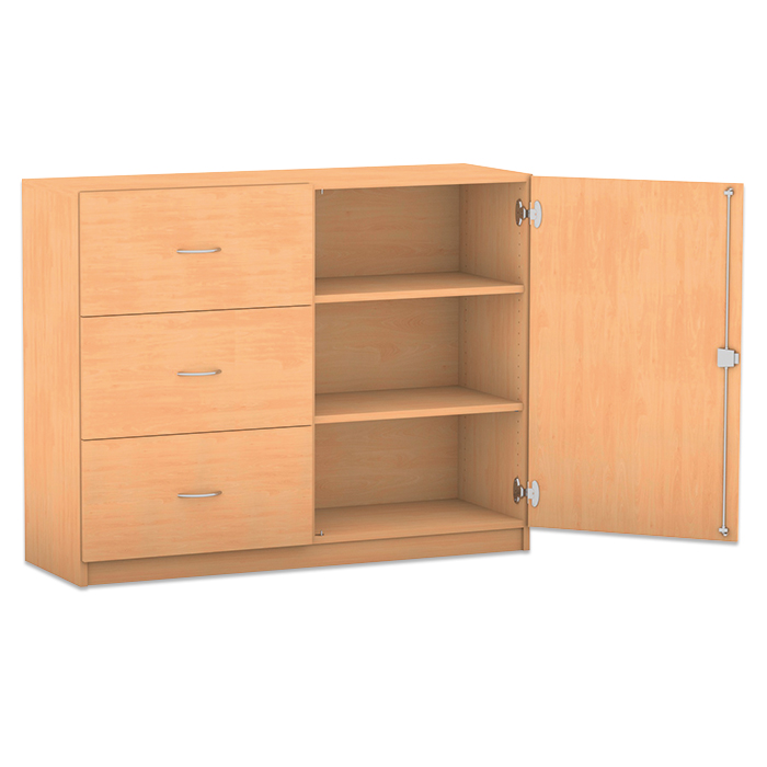 3 hohe Holzschubladen, 1 Tür, 2 verstellbare Böden