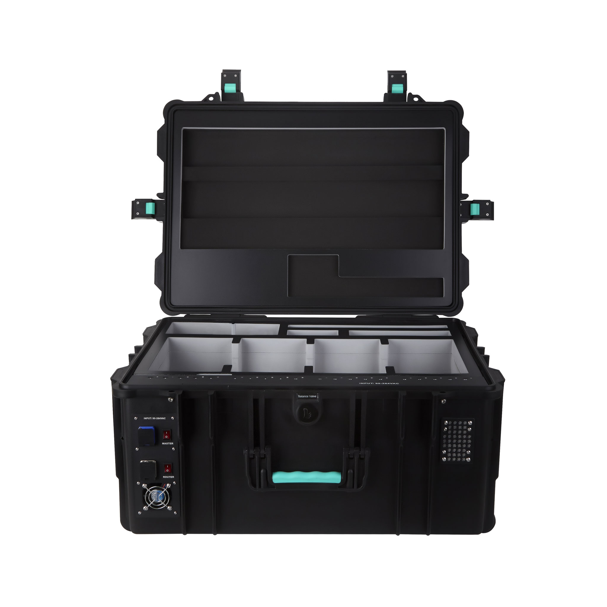 - Verschlusssystem: 4 Schnappverschlüsse (optional mit Vorhängeschloss abschließbar)