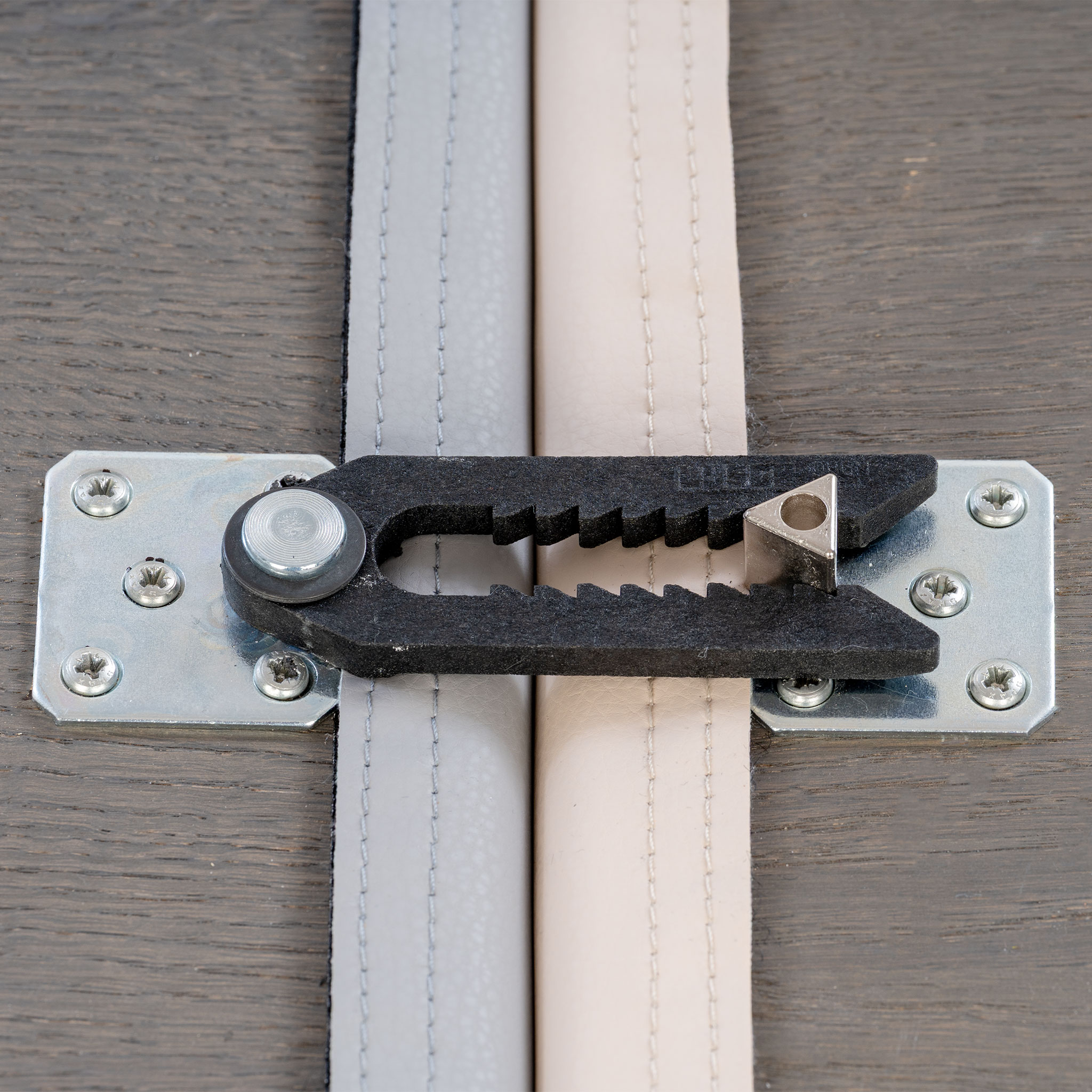 Danke des vorgebohrten doppelten Lochbilds auf der Unterseite der Hocker, montieren Sie die Beschläge zum Verbinden der Sitzteile ganz einfach. So trennen Sie die einzelnen Hockerteile bei Bedarf wieder werkzeuglos und verbinden Sie einfach in einer anderen Stellkonfiguration.