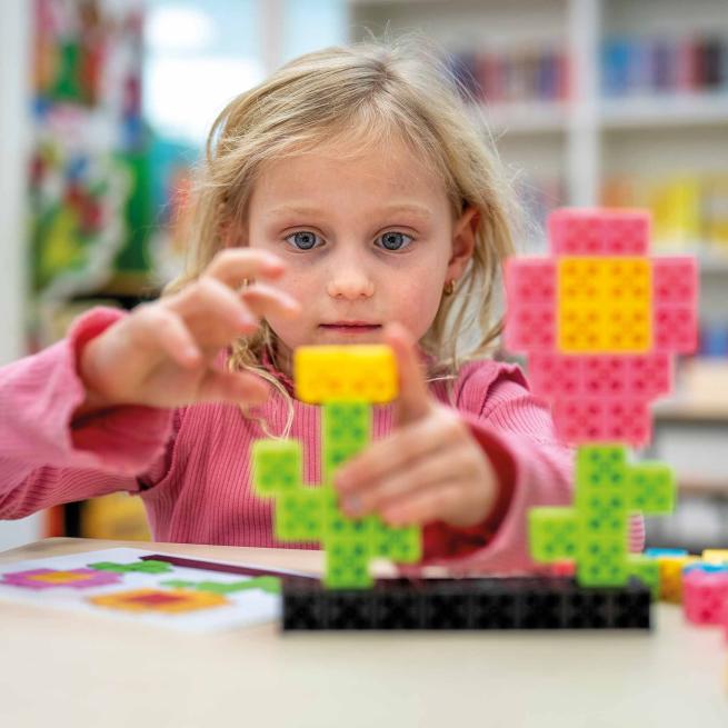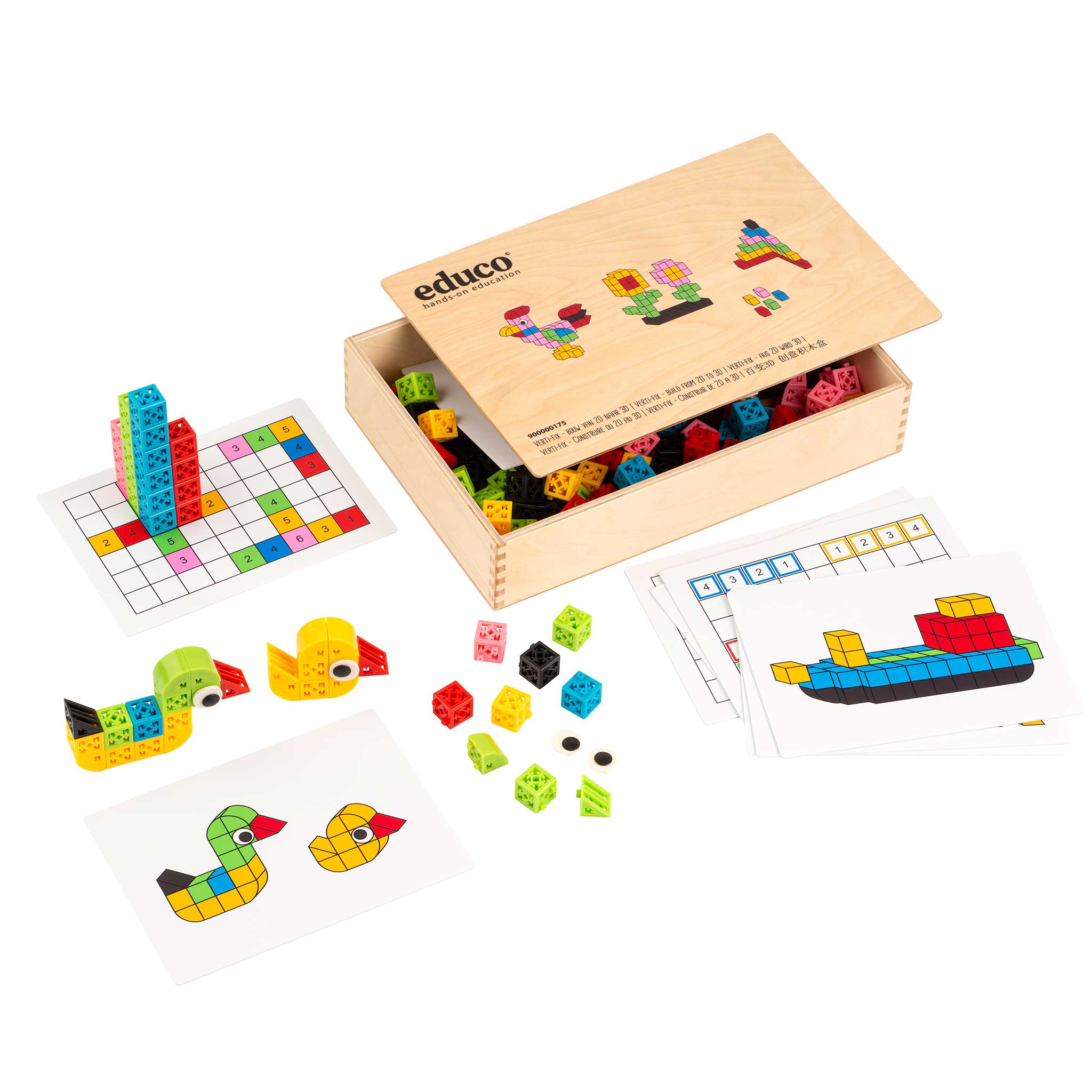 Durch das Bauen mit den Bausteinen wird nicht nur die Kreativität gefördert, sondern auch die Motorik geschult und die Konzentrationsfähigkeit gesteigert. Die Kinder können entweder die Vorbilder auf den Karten nachbauen oder ihrer Fantasie freien Lauf lassen und eigene Kreationen erschaffen. Dabei werden sie dazu angeregt, Formen und Farben zu erkennen sowie in Ebenen zu denken. Dieses Set ist ideal für Kinder, die Spaß am Bauen und Entdecken haben und gleichzeitig spielerisch lernen möchten. Ab 3 Jahren.