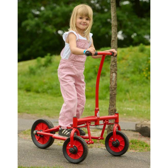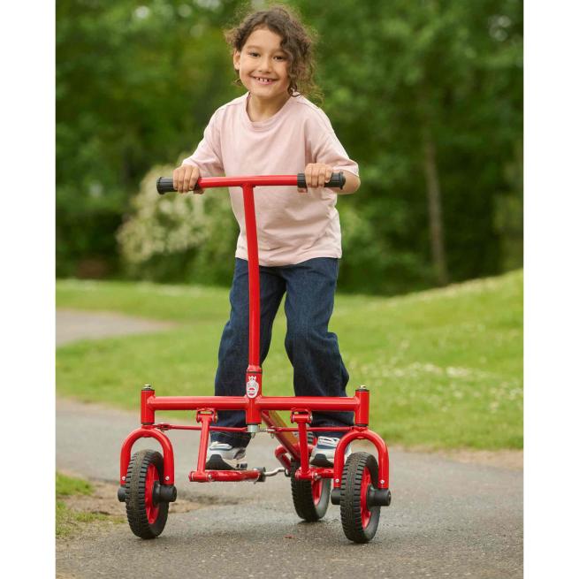 Der VIKING CHALLENGE Step Roller bringt Kinder im Vorschul- und frühen Grundschulalter aktiv in Bewegung. Mit seinen zwei dynamischen Trittbrettern ahmt das Fahrzeug die rhythmische Bewegung eines Crosstrainers nach. Mit jedem Schritt schieben sich Kinder vorwärts oder rückwärts und entdecken neue Bewegungsabläufe. Das fördert Gleichgewicht, Koordination und motorische Fähigkeiten auf spielerische Weise. Der Step Roller passt in Kindergarten, Kita und Schule, wenn Bewegung nicht nur Energie abbauen, sondern auch Entwicklung anstoßen soll.