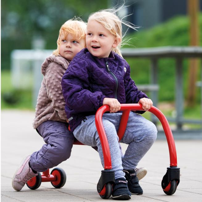Der Viking Challenge Walkabout Duo ist extra für kleine Kinder konstruiert und funktioniert ähnlich wie ein Laufrad. Durch Schwunggeben und Abstoßen mit den Füßen bewegen die Kinder das Fahrzeug vorwärts. Dabei sorgen die insgesamt 4 Räder für eine besondere Fahrstabilität. Ideal für erste Gleichgewichtsübungen beim Fahren und die Vorbereitung aufs Fahrradfahren. Zudem lässt sich der Walkabout Duo sowohl allein als auch zu zweit verwenden – wie ein kleines Tandem! Die Kids müssen sich aufeinander abstimmen und einen gemeinsamen Rhythmus finden, was zugleich körperliche Koordination und kooperatives Sozialverhalten fördert.