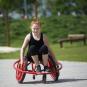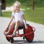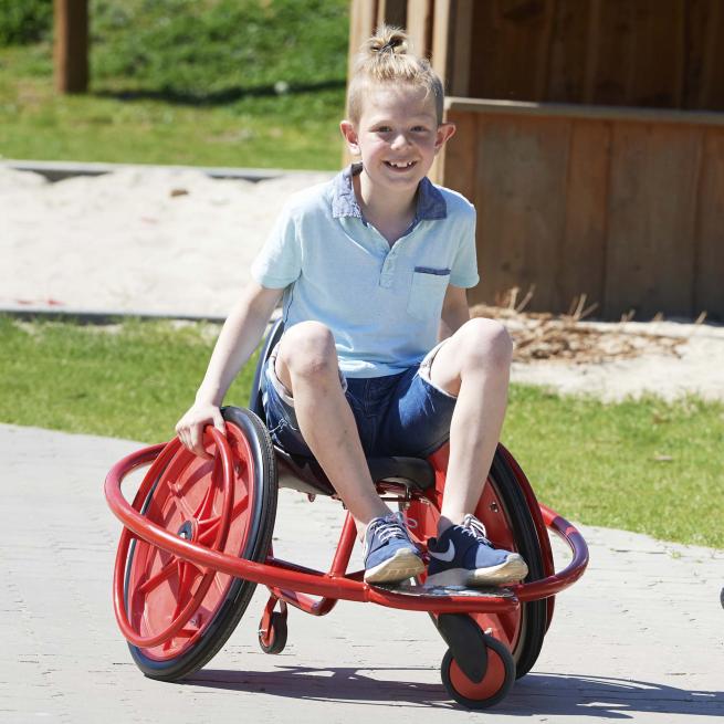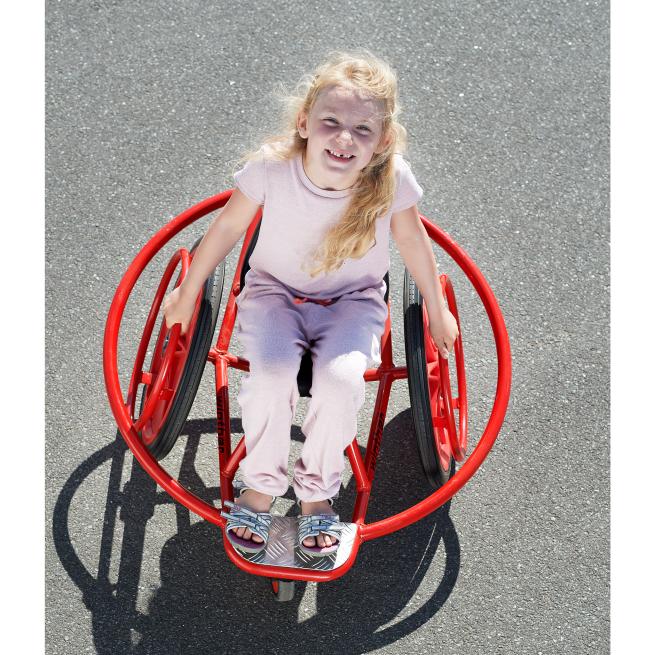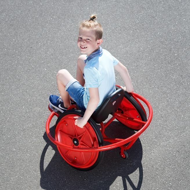 Der Viking Challenge WheelyRider ist ein ganz besonderes Kinderfahrzeug. Er ist als Rollstuhl konstruiert, zu dessen Fortbewegung und Lenkung die Kinder die Kraft aus Händen, Armen und Oberkörper benötigen – ganz so, wie beim echten Vorbild. Über das Vor- und Zurückdrehen sowie Seitwärtssteuern der großen Räder fahren die Kinder den WheelyRider in die gewünschte Richtung. Das wiederum funktioniert mithilfe der eigenen Hände, passender Armbewegungen, Veränderungen der Körperspannung und Verlagerungen des Körpergewichts – genauso, wie bei einem normalen Rollstuhl.