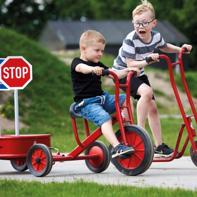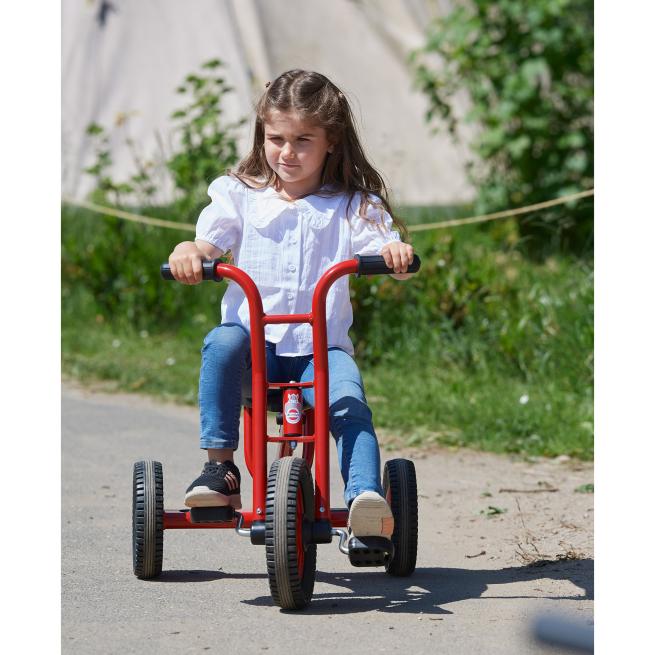 Mit dem VIKING Dreirad – hier in der großen Variante für den Einsatz in Kindergarten und Grundschule – üben sich schon Kinder ab 4 Jahren daran, sich mithilfe eines Fahrzeugs fortzubewegen. Das ist bei den ersten Versuchen noch gar nicht so einfach, doch die Kids lernen schnell und haben den Dreh flott raus. Das Fahren mit dem Viking-Dreirad ist dabei ein wunderbares Training zur Förderung der kindlichen Koordination, Raumwahrnehmung und Motorik. Zugleich schenkt es den Kindern ein Stück Unabhängigkeit und ist es die ideale Vorbereitung fürs Steuern und Lenken der nächsten Kinderfahrzeuge, wie des kleinen Viking-Rollers!