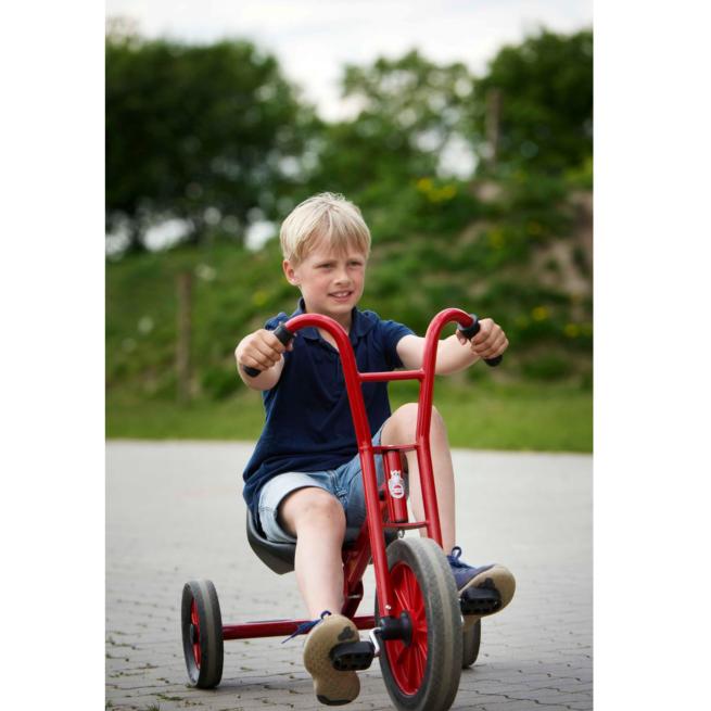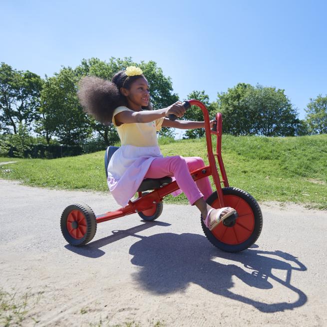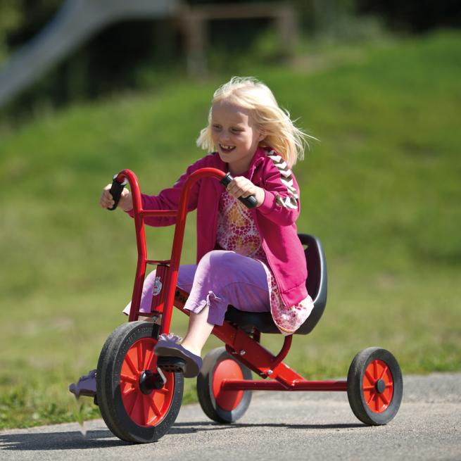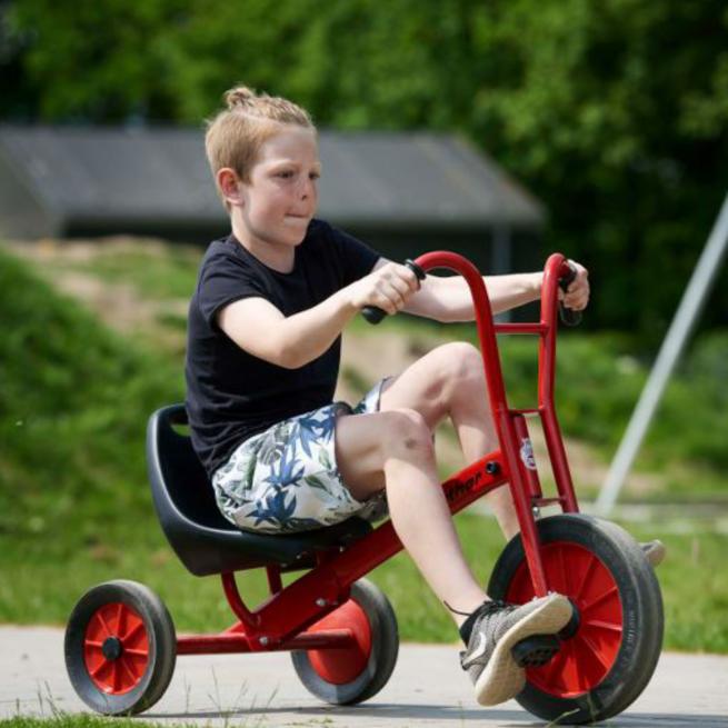 Das Viking Dreirad Maxi ist im Außenbereich und auf dem Pausenhof die ganz große Nummer: Die extragroße Variante des Viking-Dreirads hat einen Lenker in Chopperform (mit heruntergezogenen Griffen) und einen höhenverstellbaren Sitz. So passen Sie das Dreirad an unterschiedliche Körpergrößen und Beinlängen an. Denn an diesem Gefährt mit seiner schnittigen Optik wollen auch ältere Kinder die Pedale anschmeißen. Bereichern Sie den Fuhrpark Ihrer Kinderfahrzeuge und sorgen Sie auch unter den Großen für Fahrspaß in XXL. Für erweiterten Spielspaß besitzt das Dreirad Maxi eine Anhängerkupplung.