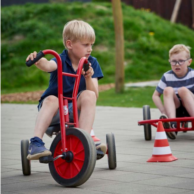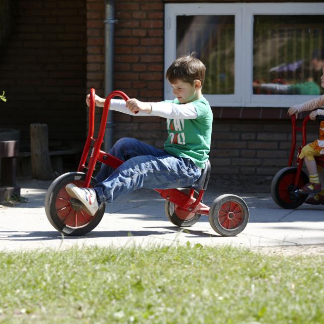 Das regelmäßige Bespielen des Viking-Dreirads Maxi trägt auf spannende Weise dazu bei, Koordination, Körpergefühl und Kondition zu trainieren. Gleichzeitig fördert es den Bewegungsdrang und das gemeinsame Spielen an der frischen Luft. Da das Dreirad Maxi auch noch für ältere Kinder interessant ist, bringt es im spielerischen Einsatz (und in Kombination mit kleineren Modellen) zudem die unterschiedlichen Altersgruppen beim Dreiradfahren zusammen. Die maximale Belastbarkeit des Dreirads Maxi beträgt 75 kg. Zur einfachen Selbstmontage.