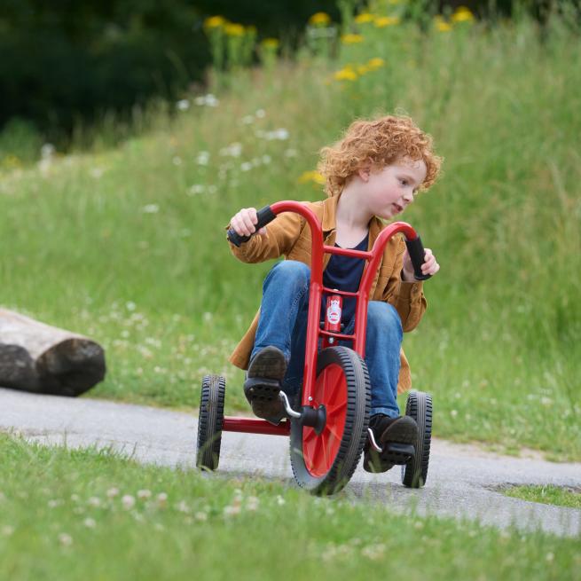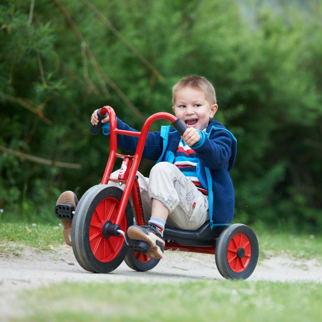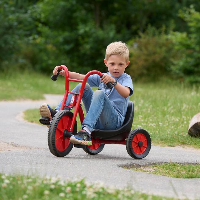 Ein echter Klassiker – neu gedacht: Das Dreirad Viking Easy Rider bietet eine extraniedrige Sitzhöhe und fährt sich wie ein Chopper. Dank großem Vorderrad mit hochwertigem Kugellager und rutschfesten Pedalen gelingt den Kindern eine geschmeidige und trittsichere Tour. Und das ist noch nicht alles, denn schließlich macht dieses Gefährt auch optisch reichlich Eindruck. Das Viking Easy Rider ist genau das, wonach die kleinen Heldinnen und Helden des Außenbereichs suchen. Setzen Sie unter Ihren Kinderfahrzeugen neue Akzente – mit diesem Dreirad sorgen Sie bei den Kindern für den ganz besonderen Fahrspaß. Für erweiterte Spielmöglichkeiten besitzt das Dreirad eine Anhängerkupplung.