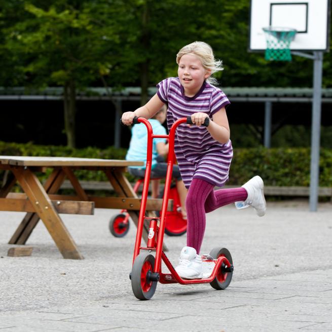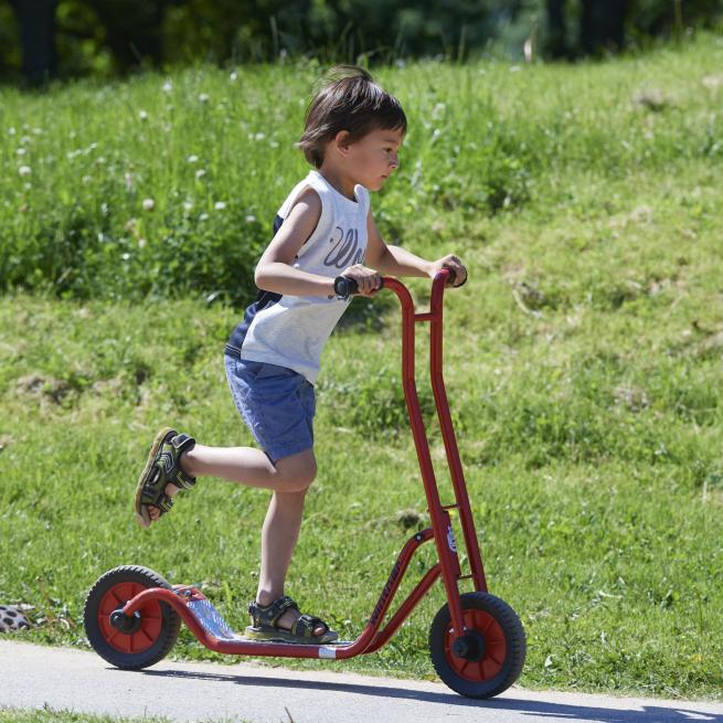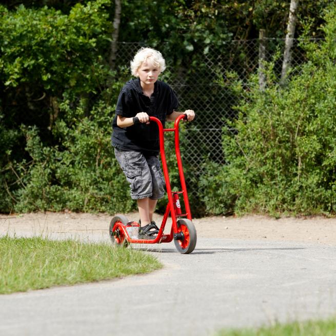Der große Viking-Roller besitzt eine niedrige Einstiegshöhe und im Vergleich zum kleinen Roller einen höhergezogenen Lenker. Er eignet sich damit ideal für Kinder in Grundschule und OGS. Die maximale Belastbarkeit des großen Viking-Rollers beträgt 50 kg. Zur einfachen Selbstmontage.