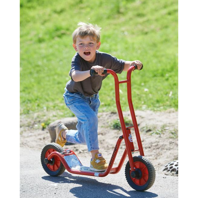 Mit dem Viking-Roller geht’s voller Power auf ins saustarke Fahrvergnügen! Mit diesem Klassiker unter den Kinderfahrzeugen stillen die Kids ihren Bewegungsdrang und trainieren zugleich ihre Koordination, Körperbeherrschung und den Gleichgewichtssinn. Dabei sorgen die rutschfeste Trittfläche sowie die Fußbremse am Hinterrad für exzellente Fahrsicherheit und ein sorglos intensives Bespielen. Das vielfältige und erfolgreiche Fahren mit dem Tretroller stärkt auch das kindliche Selbstvertrauen und motiviert stets zu neuen Unternehmungen.