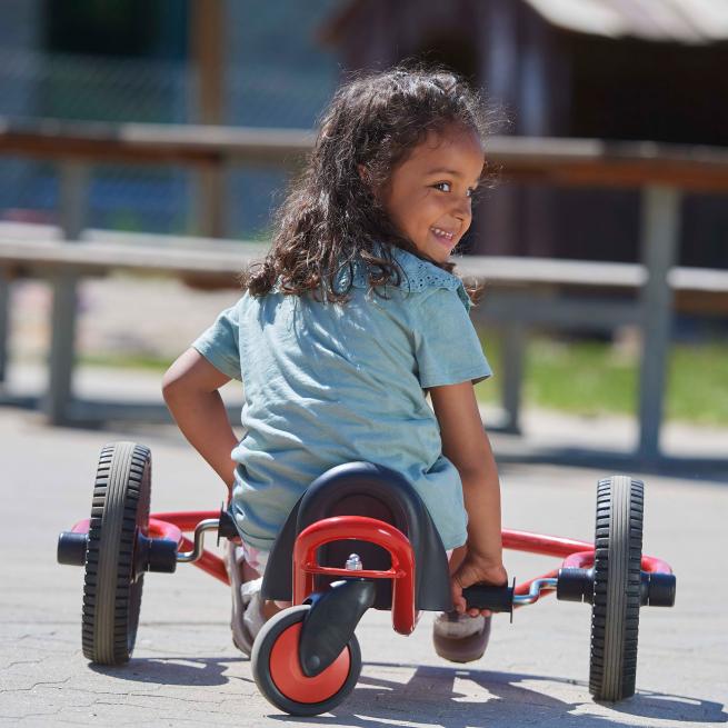 Mit diesen clever durchdachten Flitzern für unterschiedliche Altersgruppen stellen Sie Ihre Kinder vor spannende Herausforderungen. Dabei funktioniert jedes Modell auf seine spezielle Weise: Antrieb und Lenksteuerung benötigen ein je eigenes Zusammenspiel aus Bewegung, Kraft, Koordination und Körperbeherrschung. Und auch das kooperative Element kommt nicht zu kurz, um z. B. den Walkabout Duo kraftvoll zu bewegen oder das CircleBike gemeinsam ans richtige Ziel zu steuern. Einfach ein Riesenspaß und eine ausgezeichnete Förderung von Motorik und Sozialverhalten. Alle Fahrzeuge sind hochwertig und kindgerecht konstruiert. Sie besitzen robuste Rahmen aus pulverbeschichtetem Stahlrohr sowie stabile und anatomisch korrekt geformte Kunststoff-Schalensitze. Für langanhaltenden und gesunden Bewegungsspaß, denn hier will so schnell niemand Pause machen!L x B x H: 93 x 74 x 29 cm