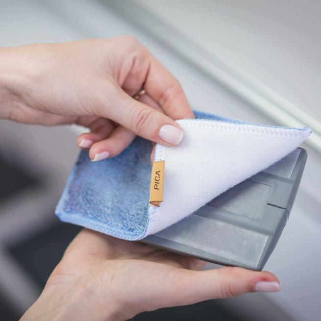 Tipp: Für besonders große Flächen und zum feuchten Abwischen von Schultafeln empfehlen wir das große Pica-VISOR-Mikrofaser-Wischtuch in 40 x 40 cm.
