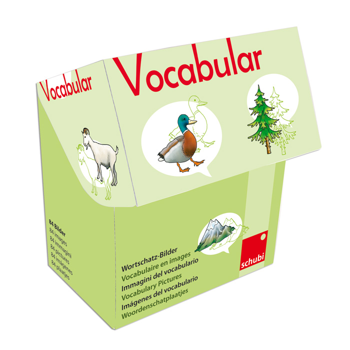 Die Klappbox enthält 84 farbige Wortschatzbilder im Format 11 x 11 cm.