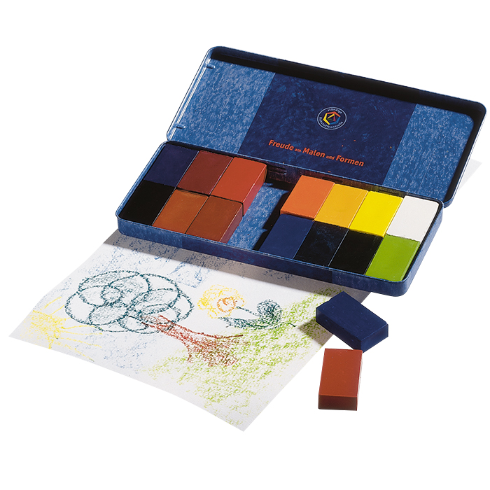 Die wasserfesten Stockmar-Wachsmalfarben zeichnen sich durch eine hohe Qualität aus. Sie haften auf vielen verschiedenen Materialien (Papier, Pappe, Glas, Metall, usw.) und besitzen eine hohe Bruchfestigkeit. Nach dem Auftragen sind die Farben wischfest und haben eine hohe Leuchtkraft. Die Blöcke sind papierumwickelt, Ø 12 mm, 85 mm lang