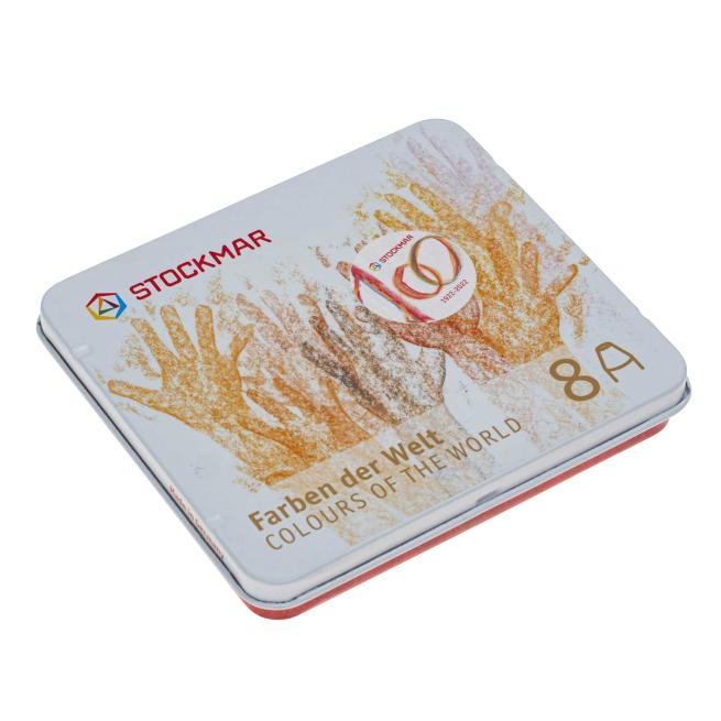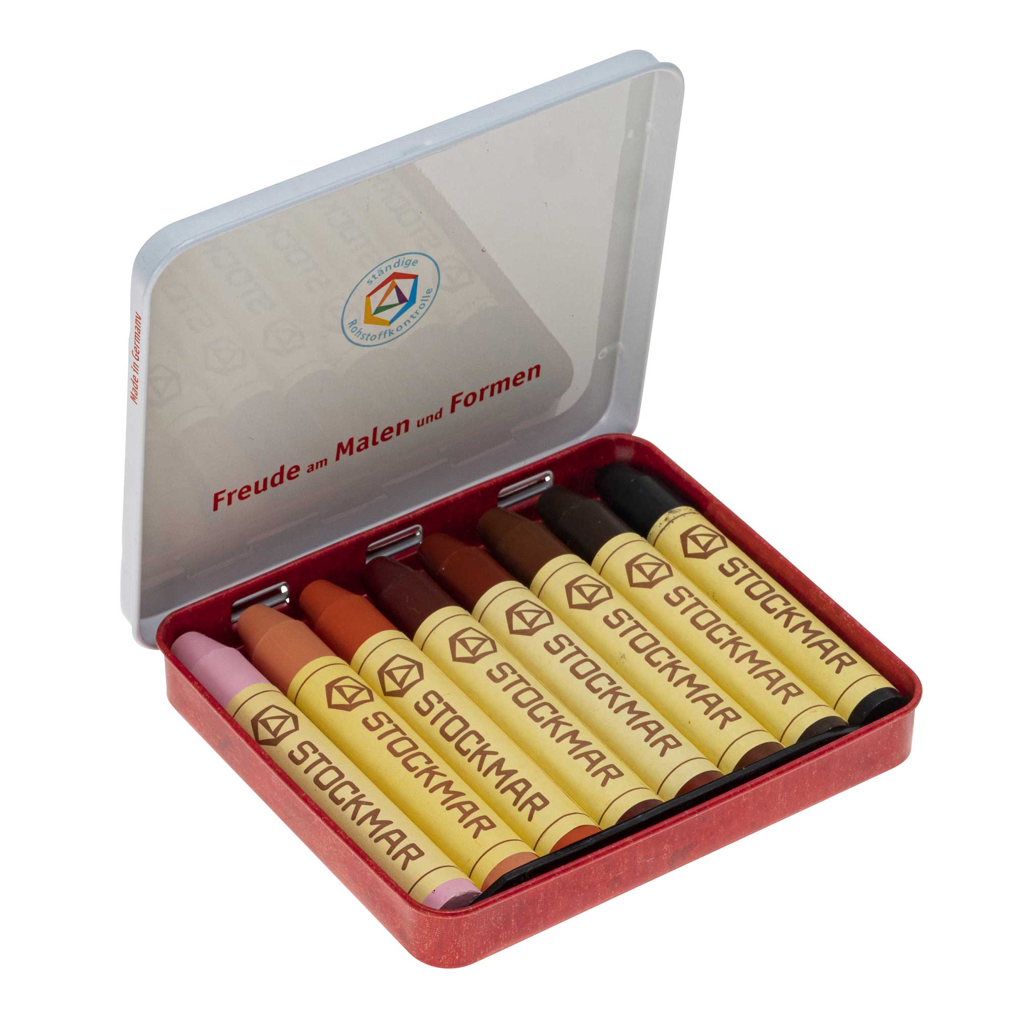 8 Wachsmalstifte im Blechetui in den Farben: