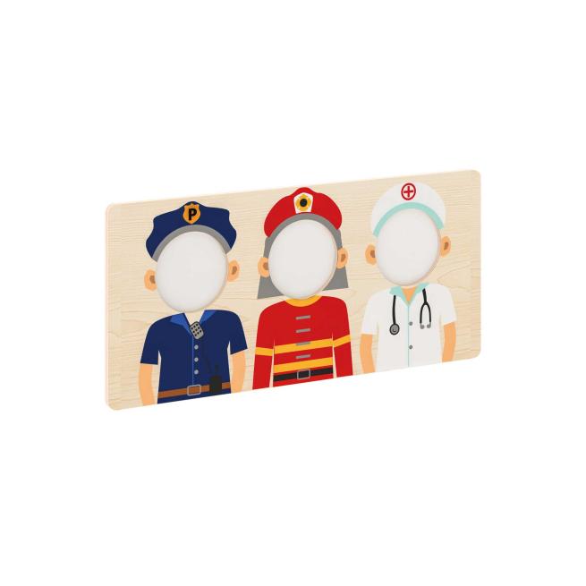 In unterschiedliche Rollen schlüpfen Kinder mithilfe der witzigen Wandelemente. So entdecken sie ihr eigenes Gesicht plötzlich auf dem Körper unterschiedlicher Tiere oder nehmen sich selbst in verschiedenen Berufen wahr. Befestigen Sie die Elemente z. B. im Gruppenraum, Flur, Eingangs- oder Wartebereich. Mit Standard-Montagematerial.