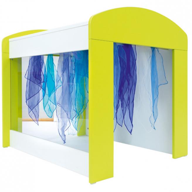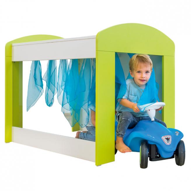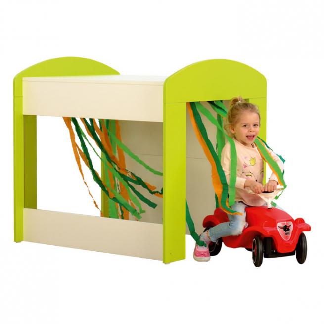 Ein Bobby-Car braucht ab und zu eine Autowäsche? Da kommt der Fahrer doch gerne gleich mit in die Waschanlage. Aber auch ohne Fahrzeug macht das Krabbeln durch die Waschanlage riesigen Spaß. Flatternde Tücher, wie Chiffon-Tücher, bringen spannende sensorische Erlebnisse für Ihre Kinder. Stecken Sie die Tücher einfach durch die Einstecklöcher, und los geht der Fühlspaß. Durch die Acrylglas-Fenster haben Sie Ihre Kleinen jederzeit gut im Blick.