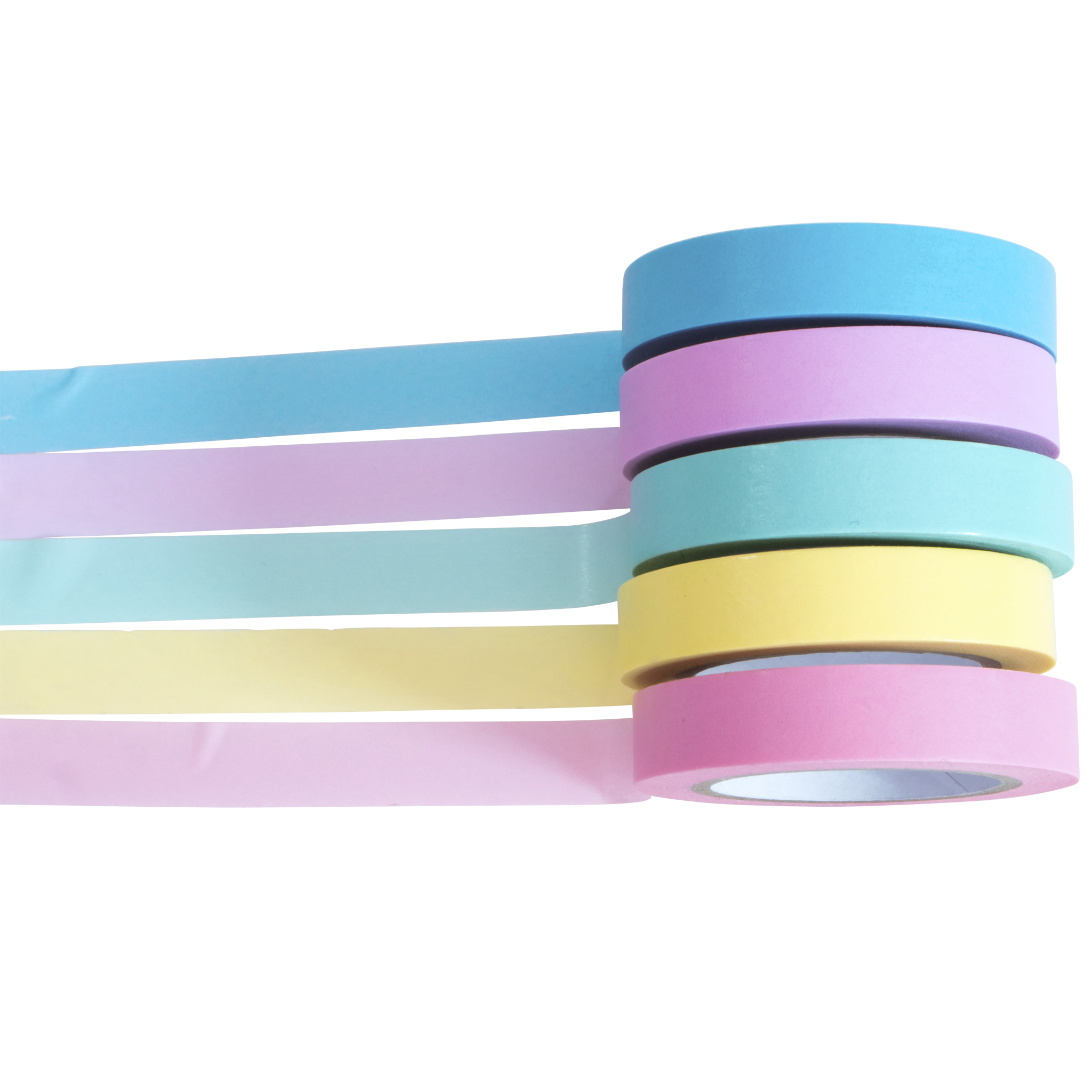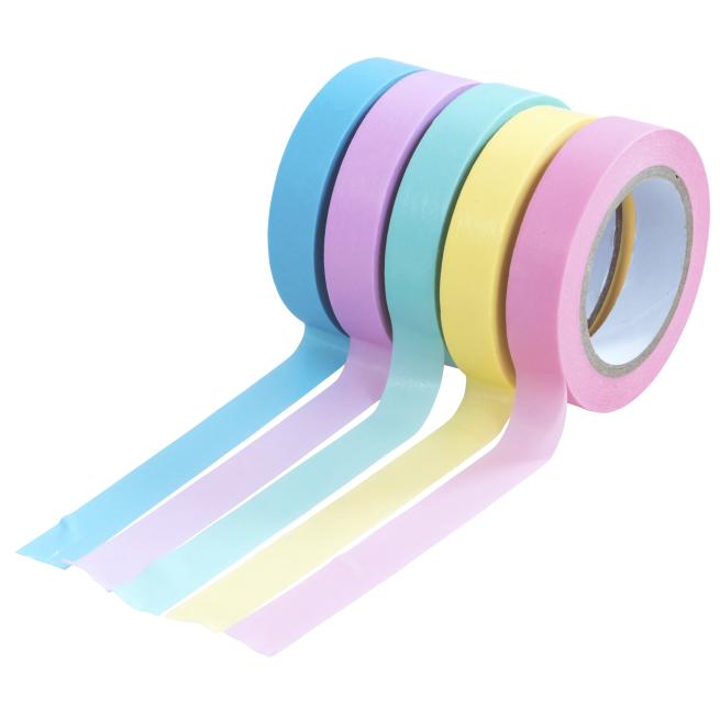 5 Rollen Washi Tapes in modernen Pastellfarben aus leicht transparentem, mattem Reispapier. Das Deko-Klebeband lässt sich leicht von Hand abreißen und ist beschreibbar. Es klebt auf glatten Oberflächen, Wänden sowie Papier und lässt sich rückstandsfrei ablösen. Ideal für Planer, Kalender und vieles mehr.