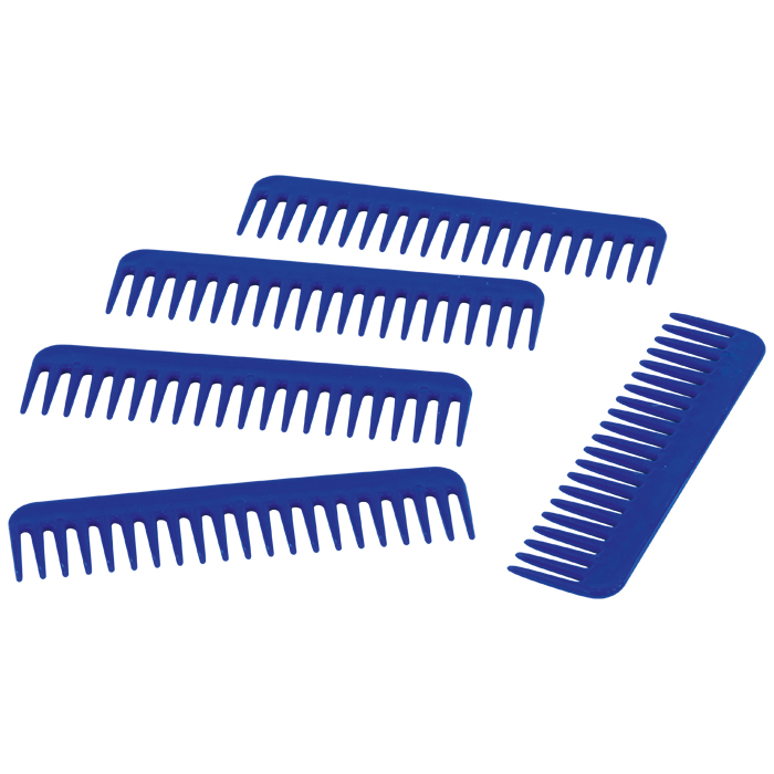 5 blaue Webkämme aus Kunststoff.